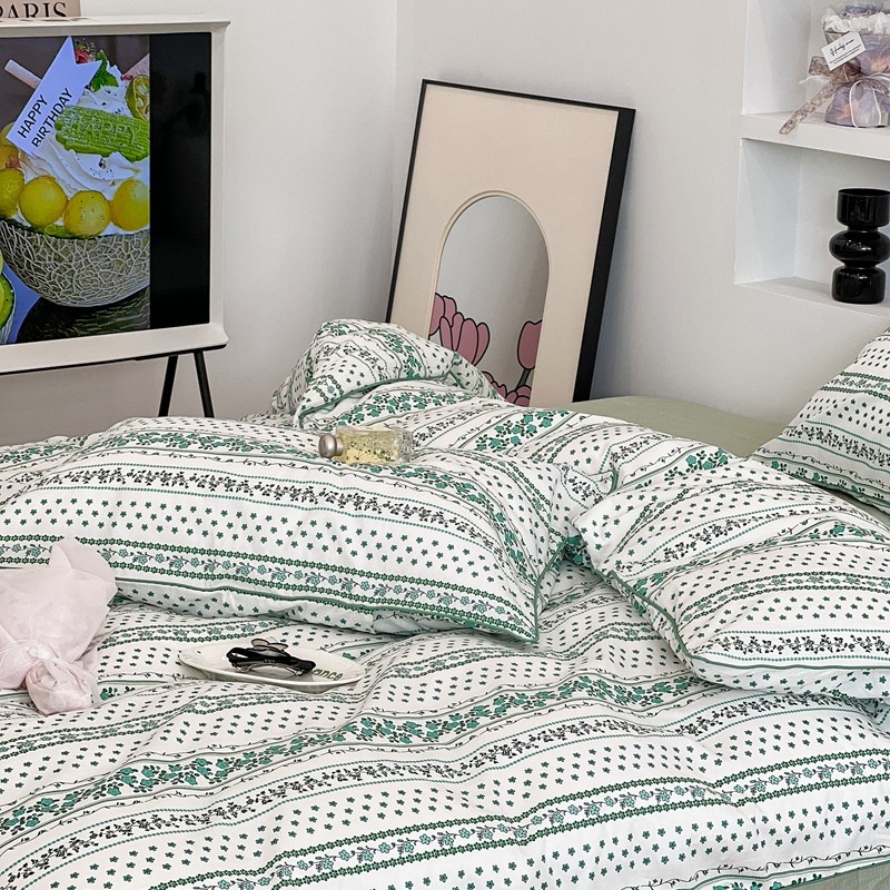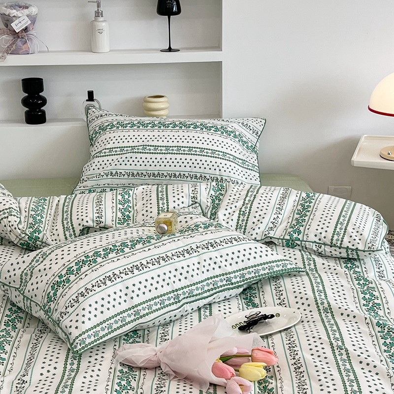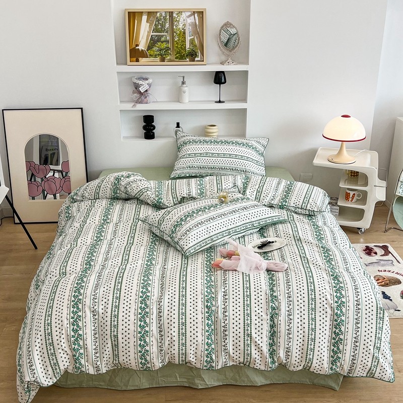 (总)昔可 2023新款全棉ins格子混搭系列四件套,ins简约绿格,粉蓝格,开心果格,学院格纹,粉绿格,海盐兰格,黄绿格,夏日蓝条,芝士黄条,紫芋泥芝士格