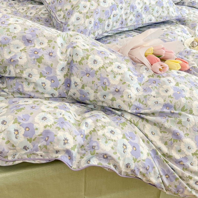 (总)昔可家纺 2023新款全棉小花系列四件套,柏林少女,小小的樱桃,紫色葡萄