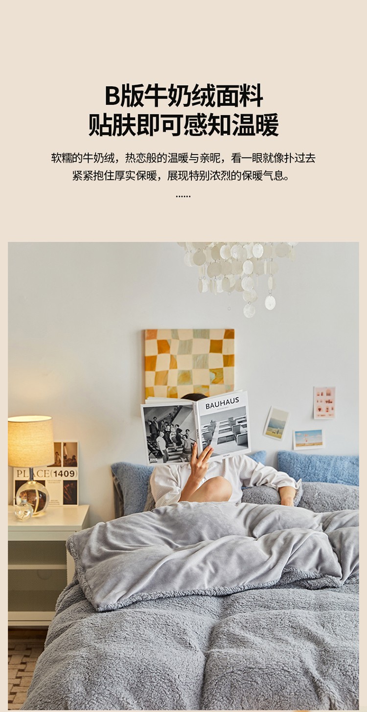 商品名称:大元 2025新款A版羊驼绒B版牛奶绒纯色四件套 浅灰
