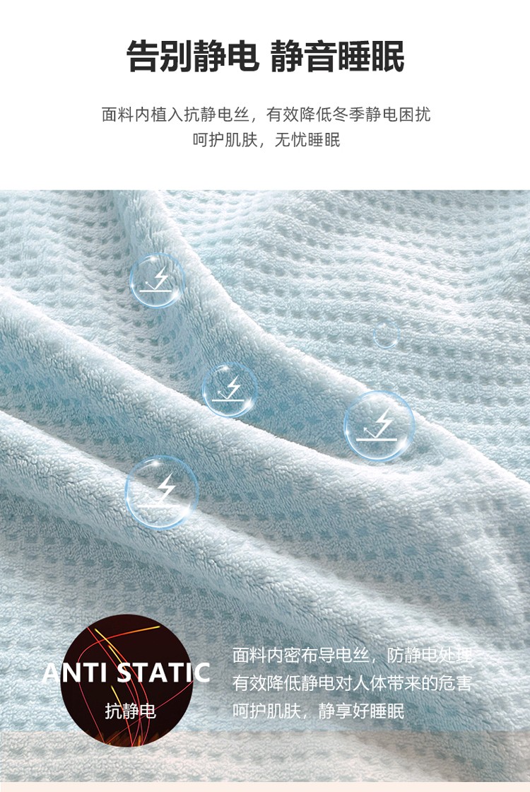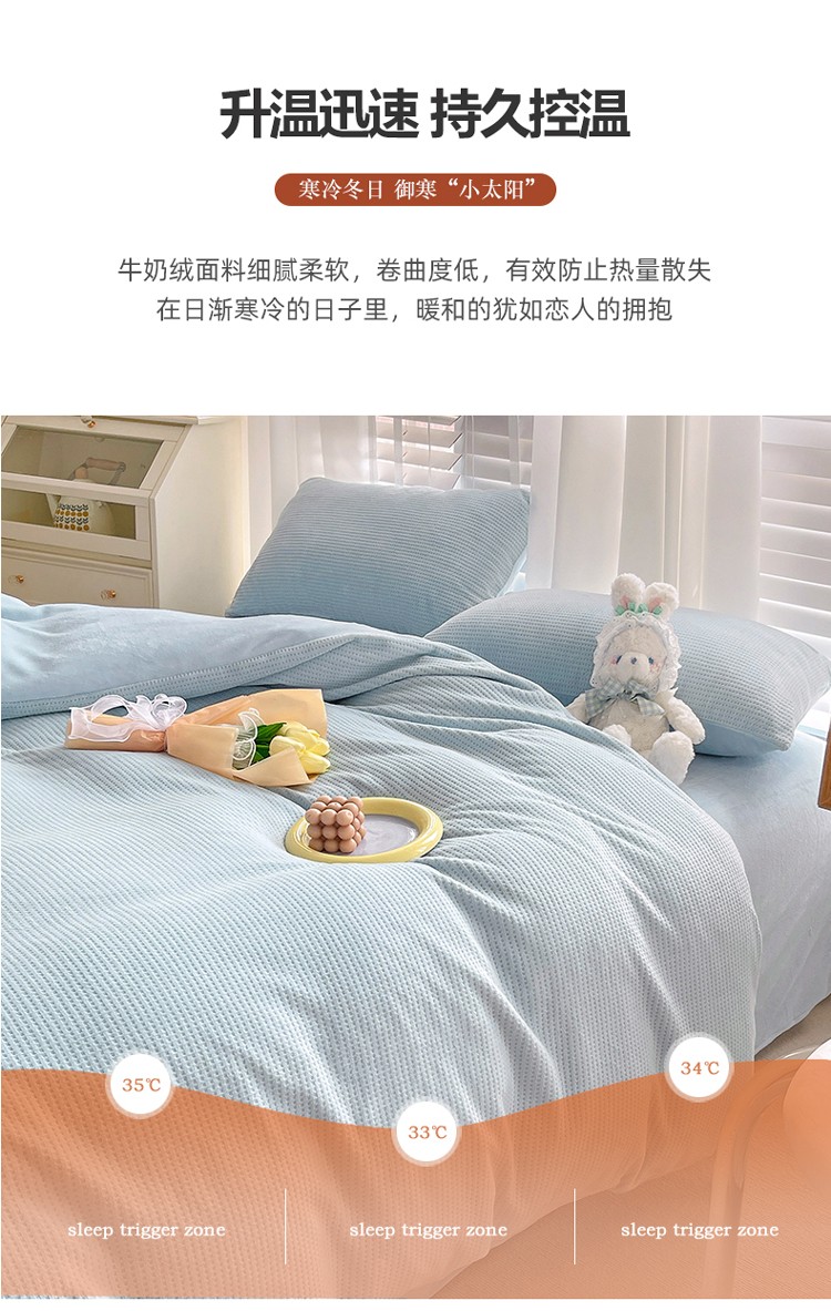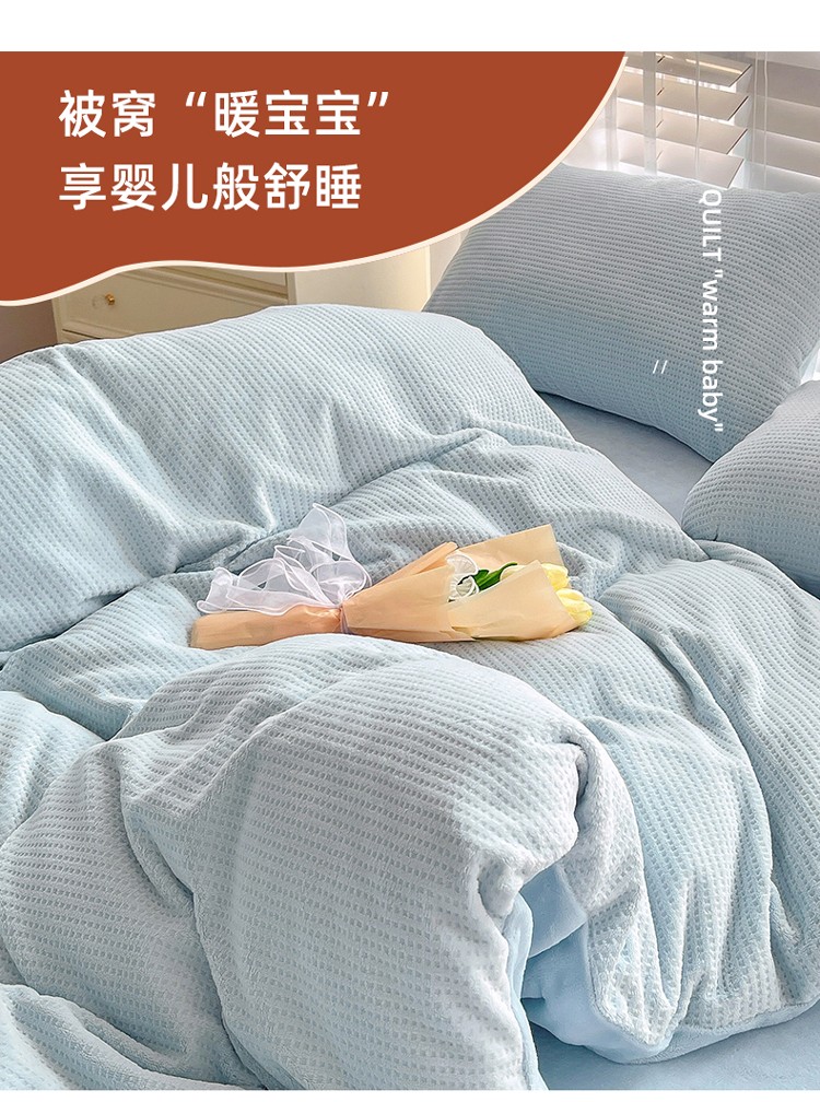 捌月 新款华夫格牛奶绒四件套 华夫格-蔚蓝有买家秀提供