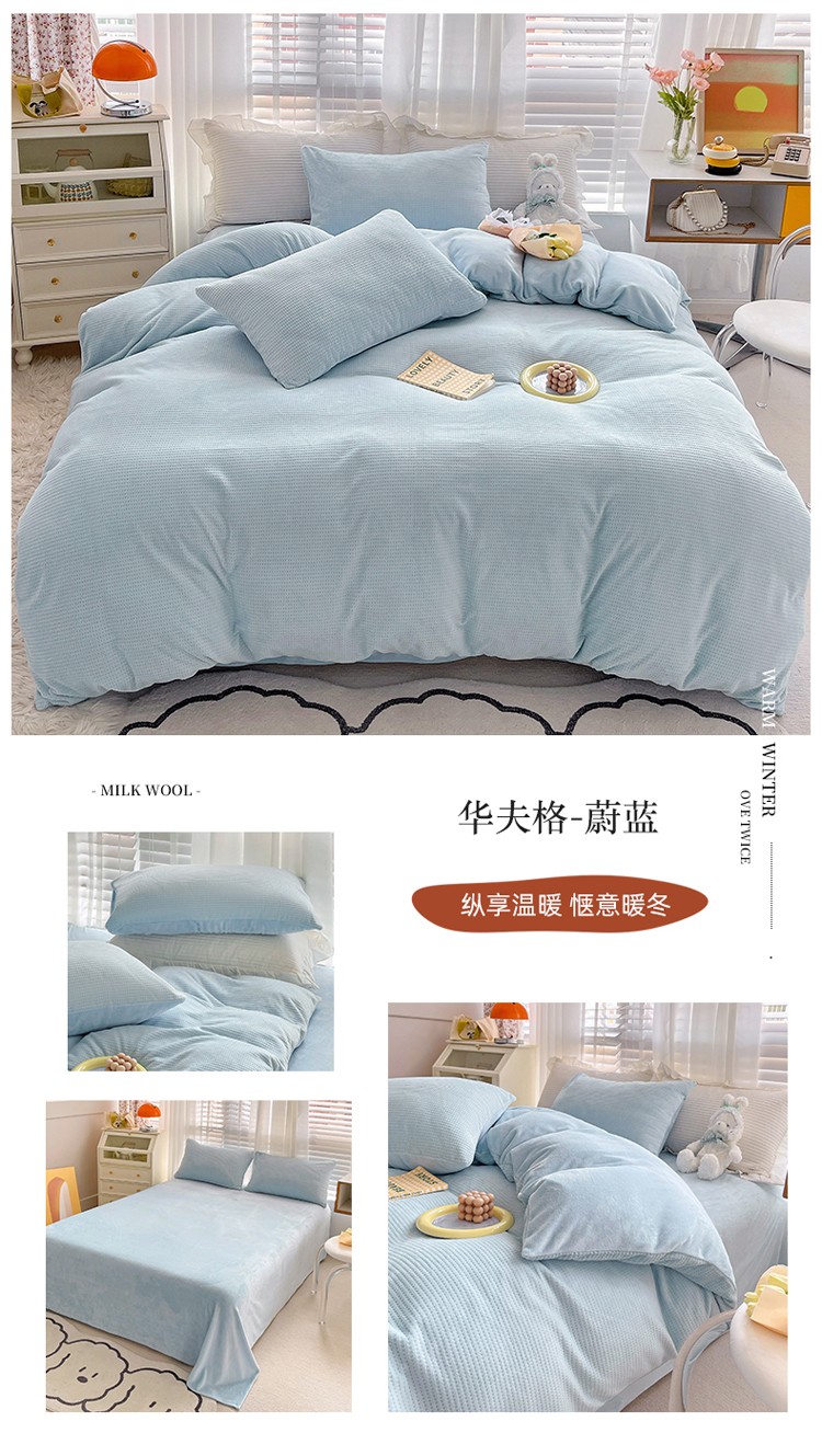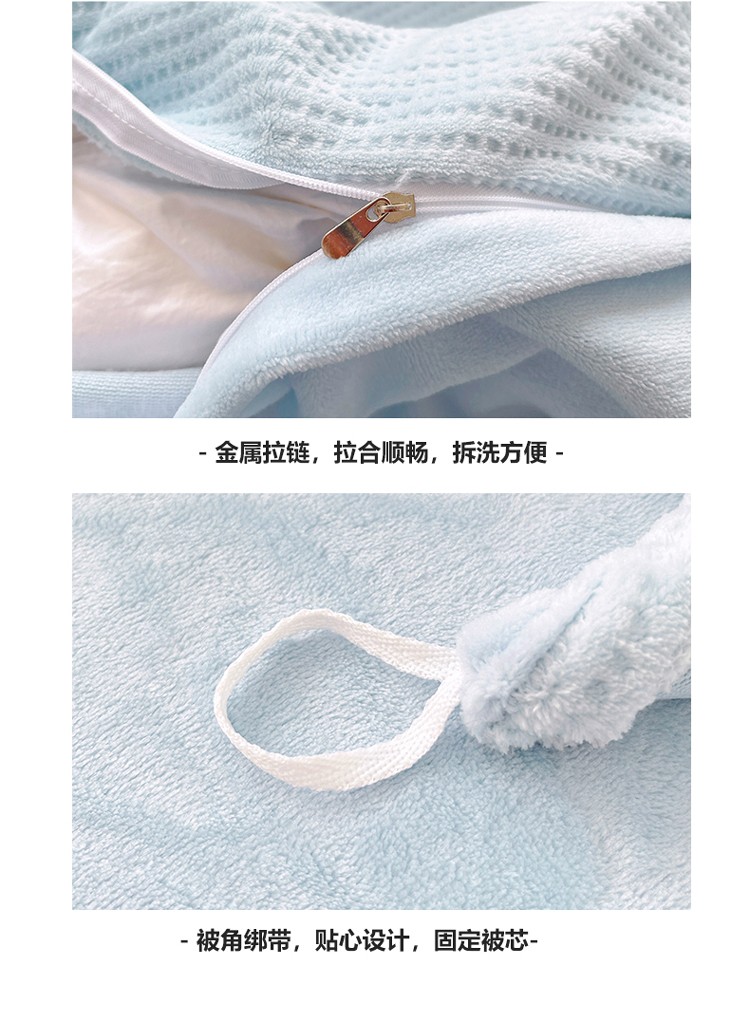 商品名称:捌月 新款华夫格牛奶绒四件套 华夫格-蔚蓝有买家秀提供