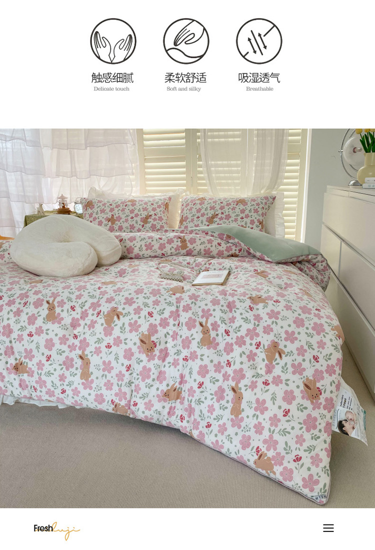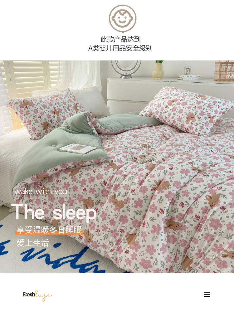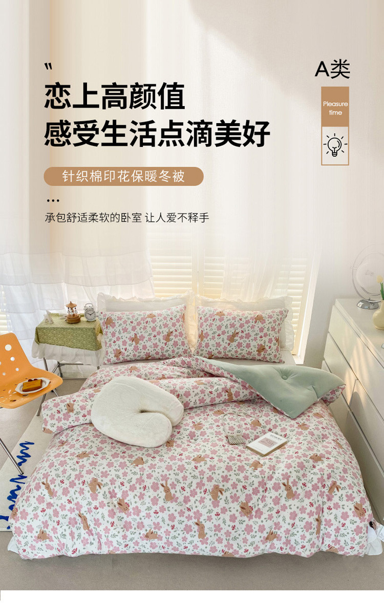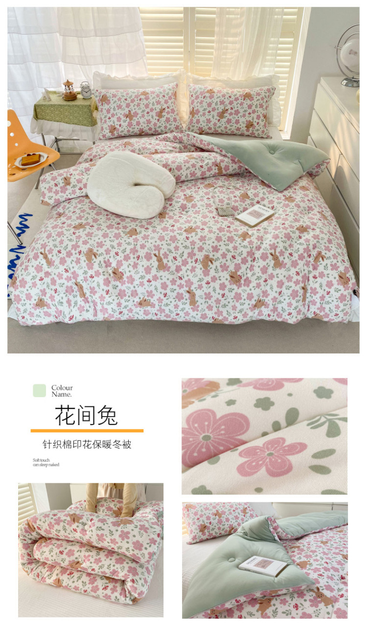 • 91家纺网 家纺一手货源 找家纺 寐居 2022新款针织棉A类超柔保暖冬被 花间兔