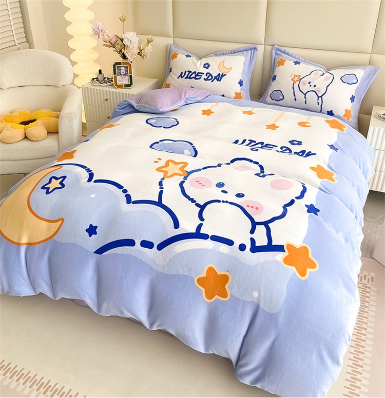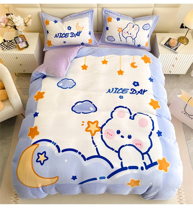 2022懒猫家纺大版卡通印花牛奶绒四件套 梦幻星空