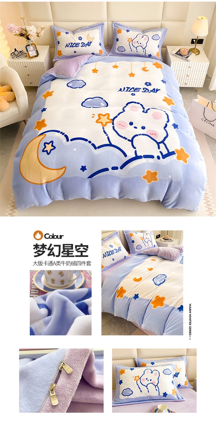 商品名称:2022懒猫家纺大版卡通印花牛奶绒四件套 梦幻星空