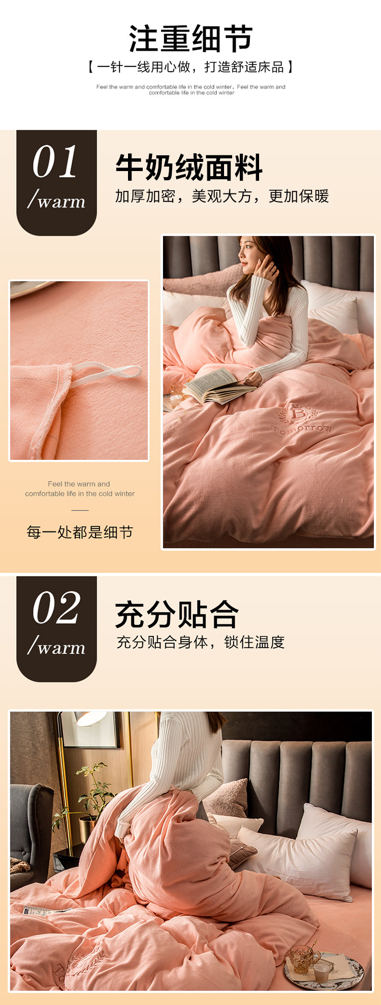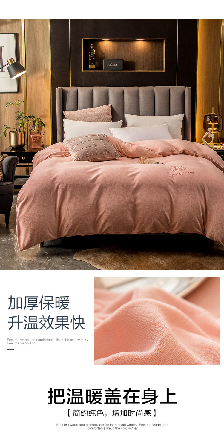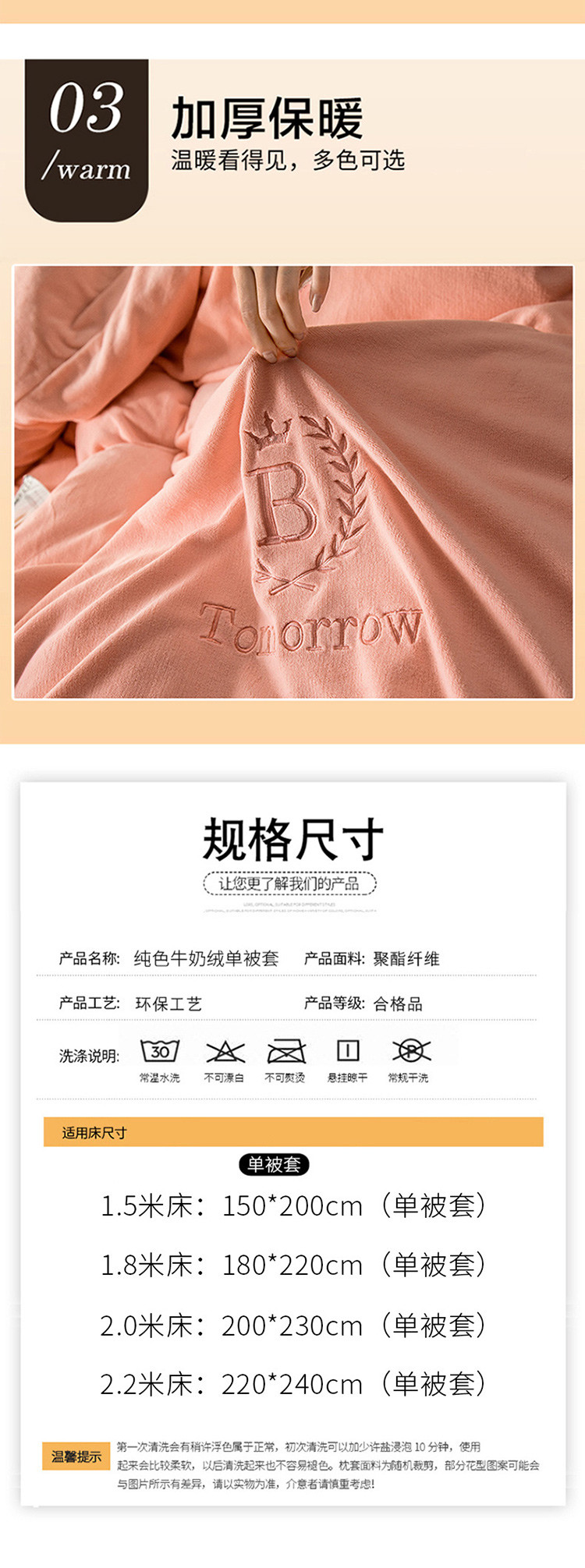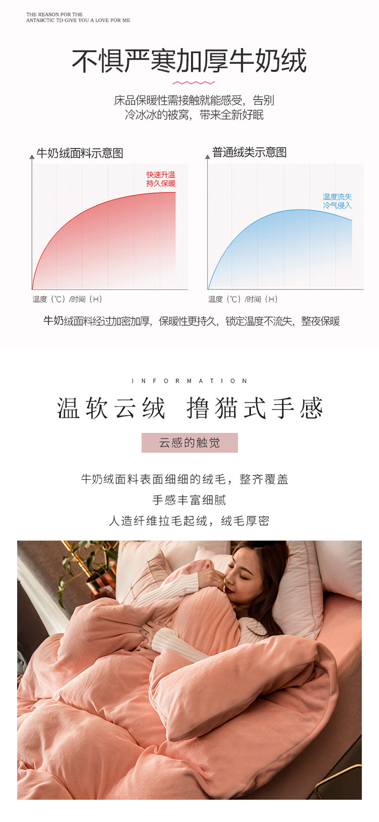商品名称:丽美人 2022新款加厚保暖纯色简约牛奶绒系列单品被套 樱花粉