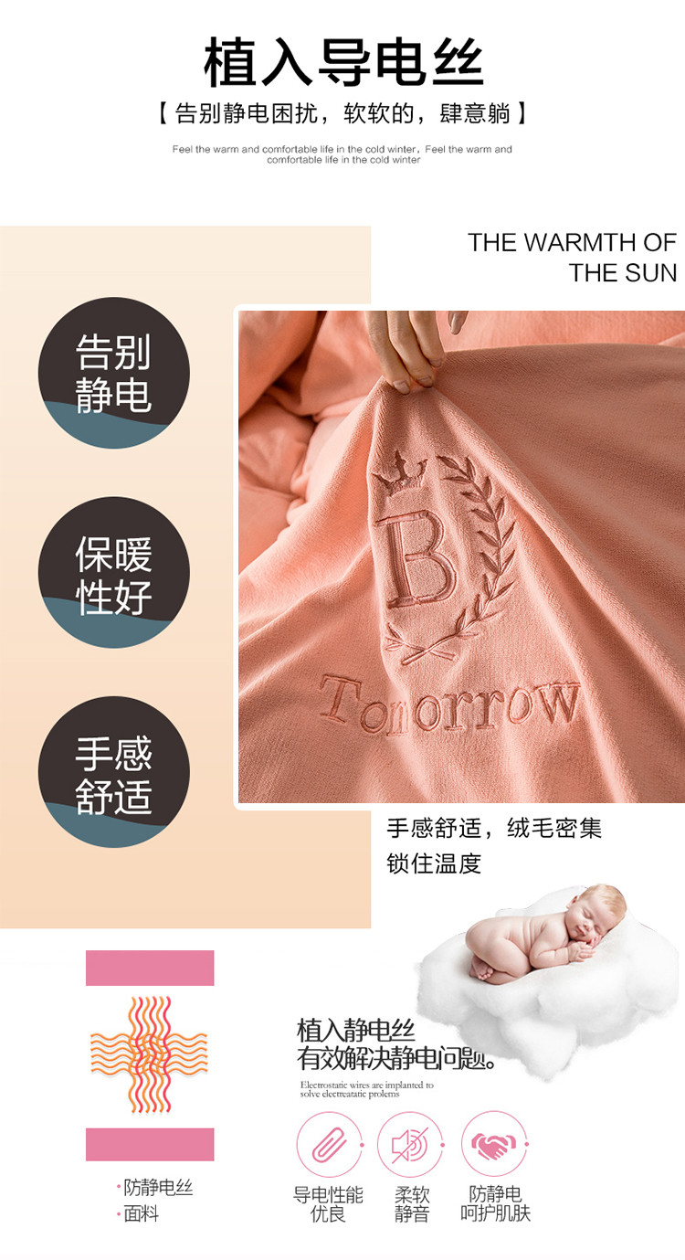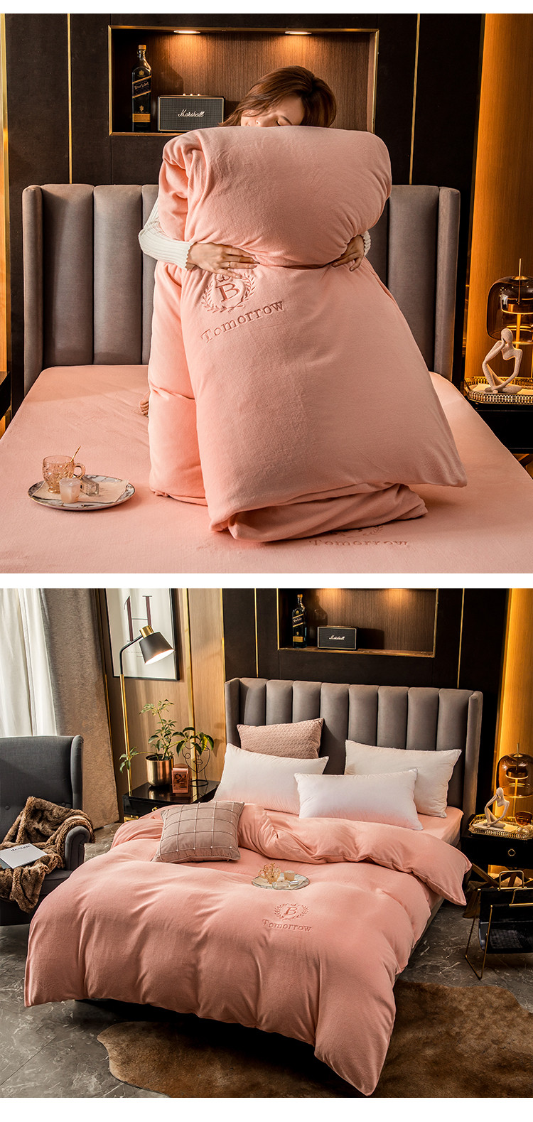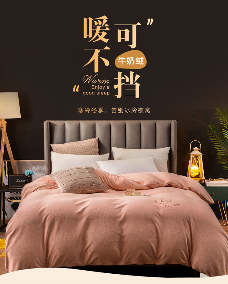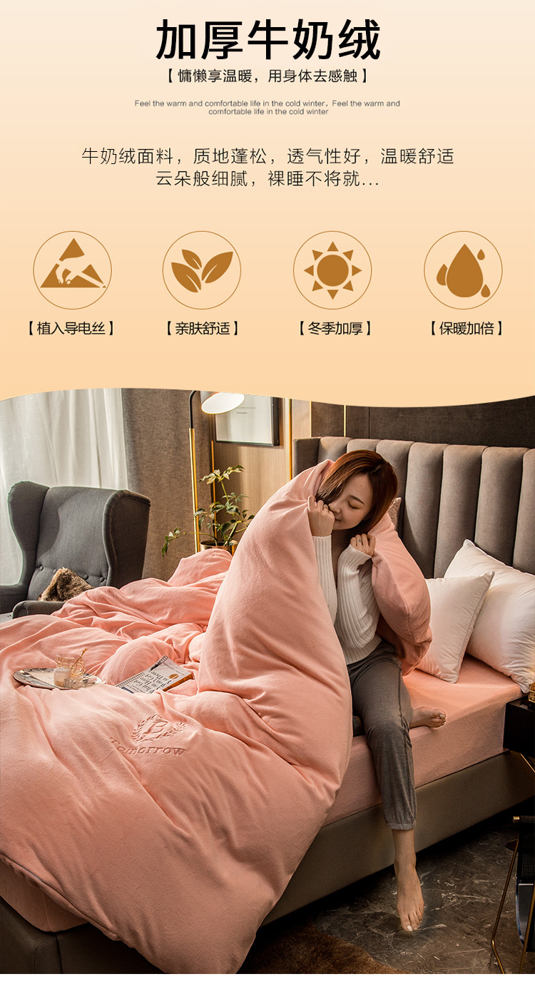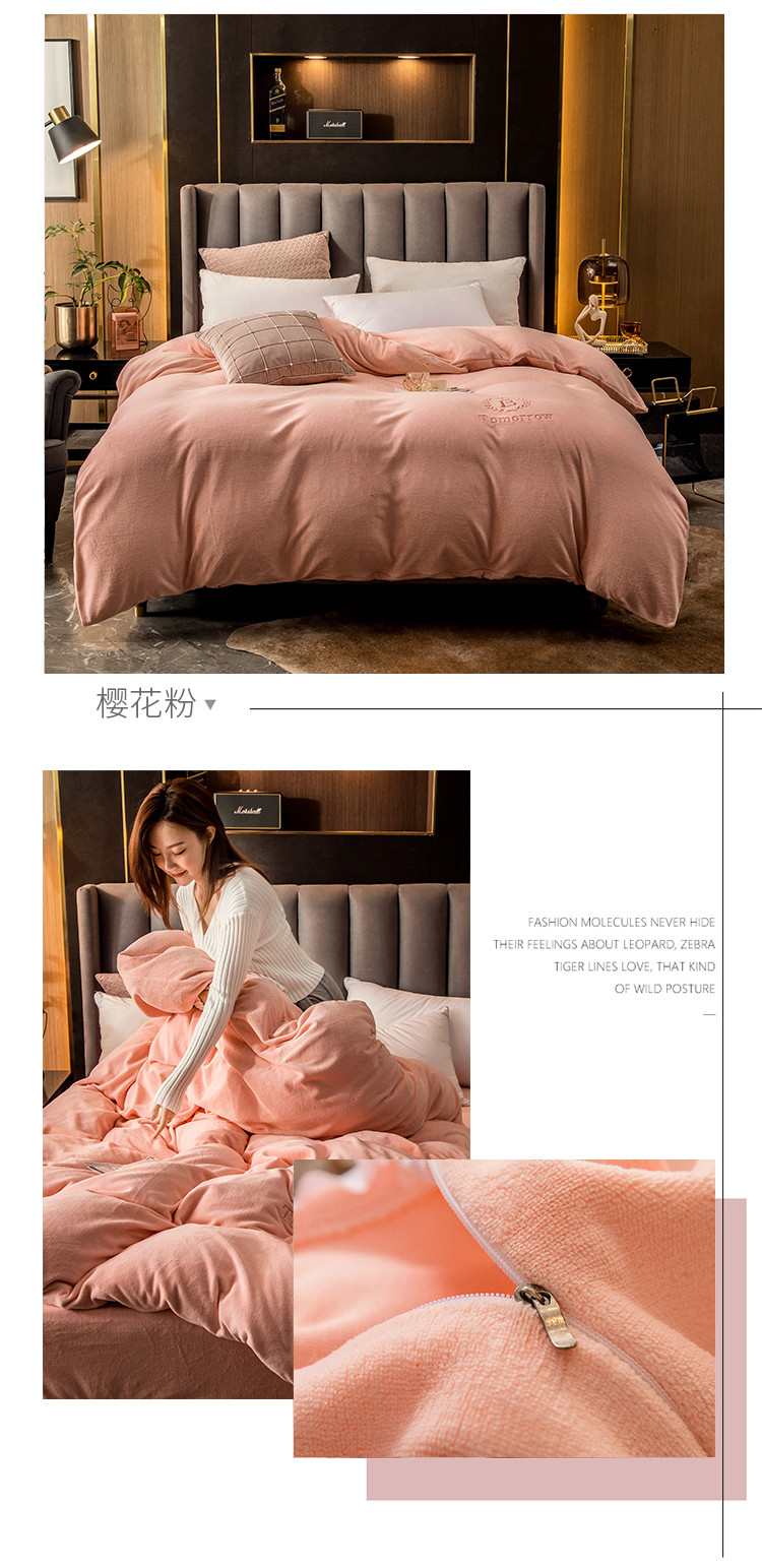 商品名称:丽美人 2022新款加厚保暖纯色简约牛奶绒系列单品被套 樱花粉