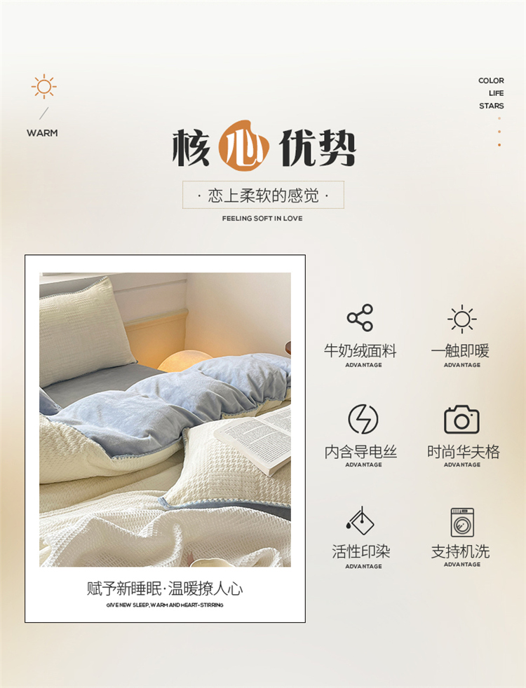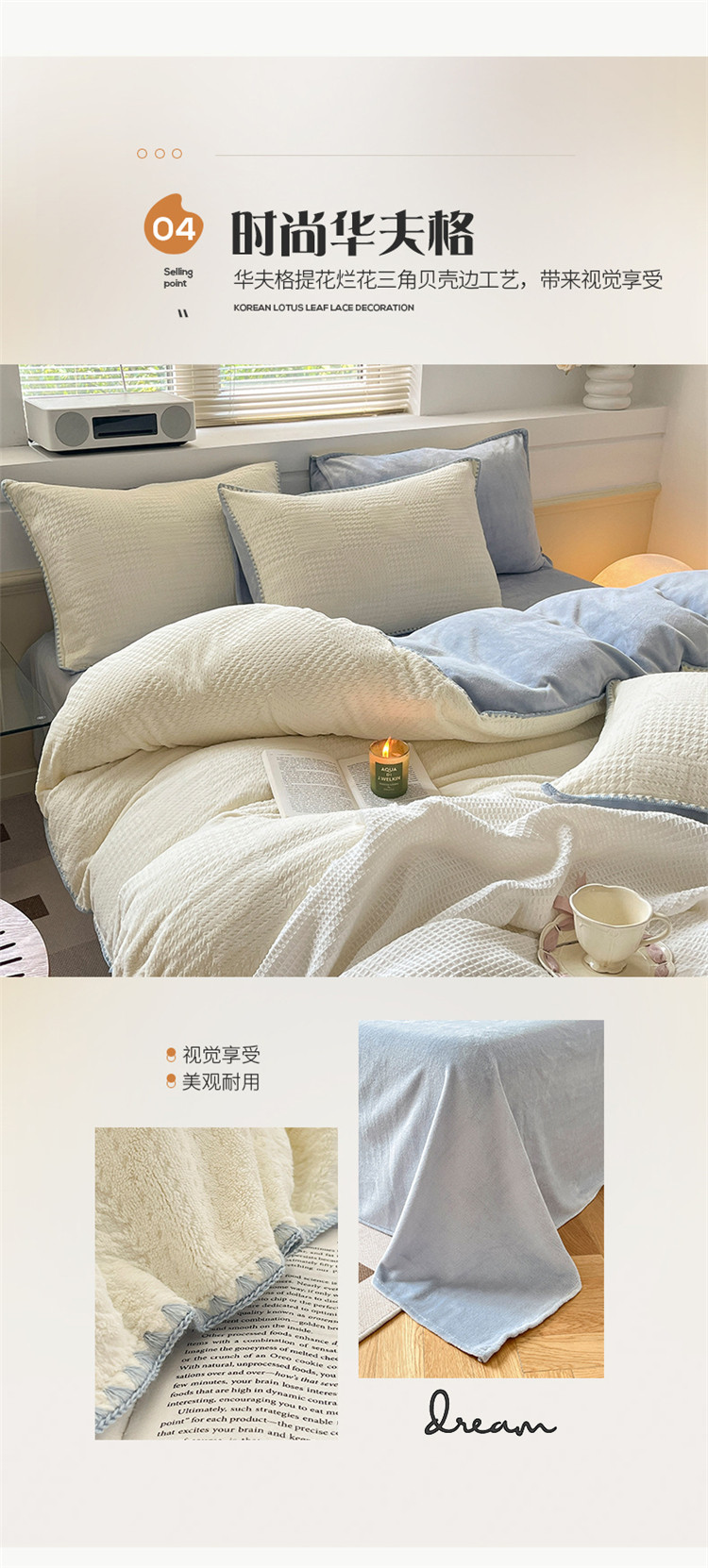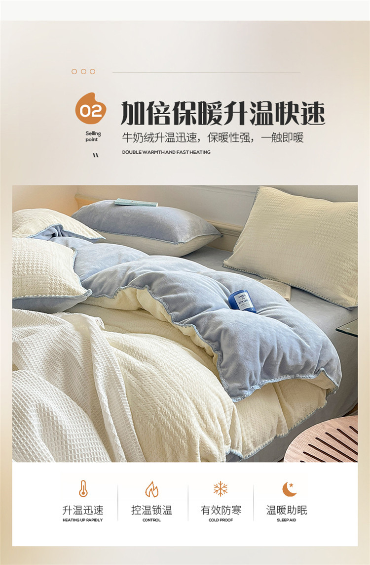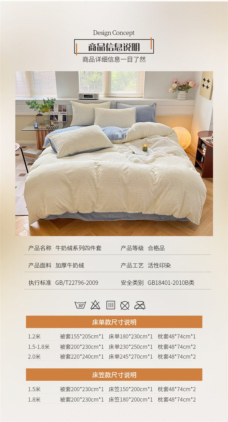 商品名称:桃子 新款A类华夫格千鸟格烂花加厚牛奶绒四件套 绒华夫格白兰