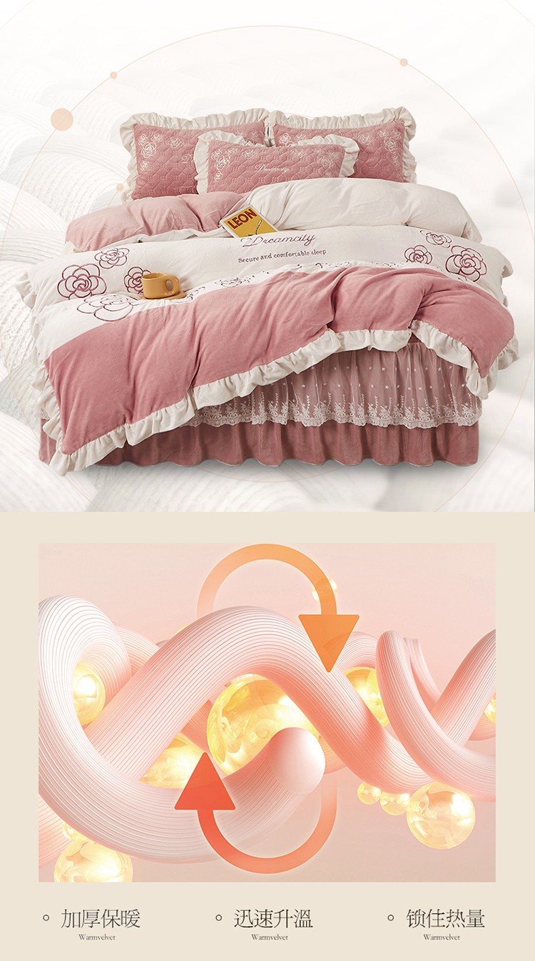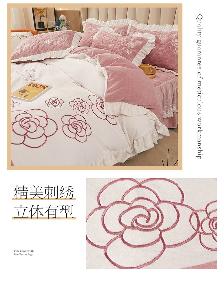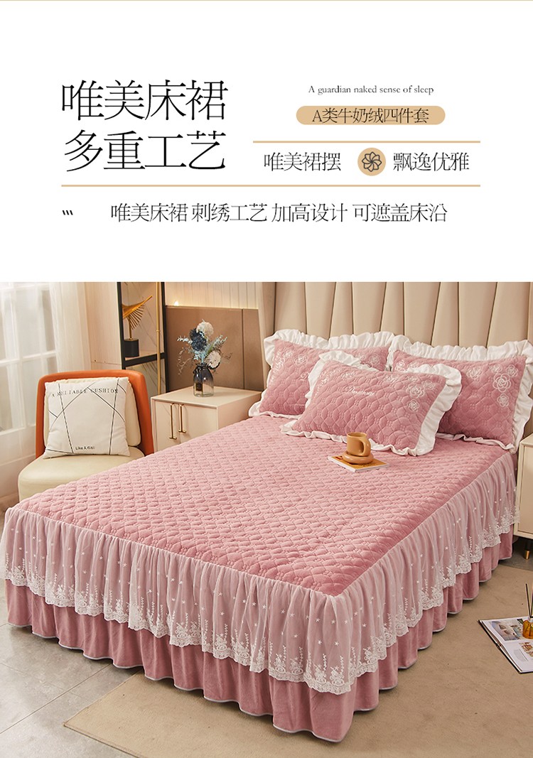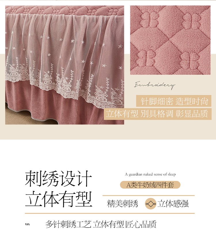 (总)宜凡家纺 2025新款兔绒提花牛奶绒夹棉床裙四件套,爱心 少女粉,爱心 粉紫,爱心 驼色,蝶舞 大红,蝶舞 米色,蝶舞 浅紫,蝶舞 玉色,简爱 苍青,简爱 豆沙紫,简爱 玉色,樱桃 苍青,樱桃 豆沙紫,樱桃 奶油白