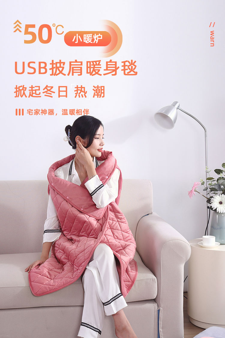 暖居 2024新款欧盟标准CE认证Usp披肩暖身毯 粉色
