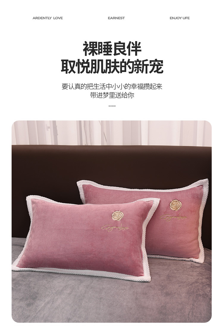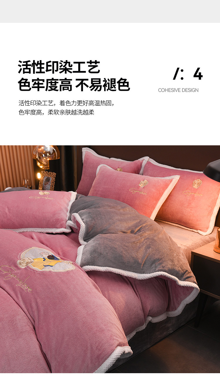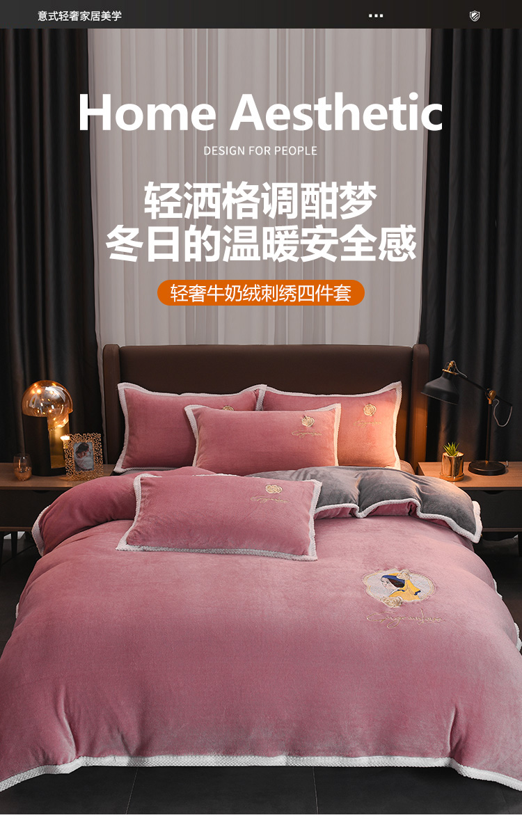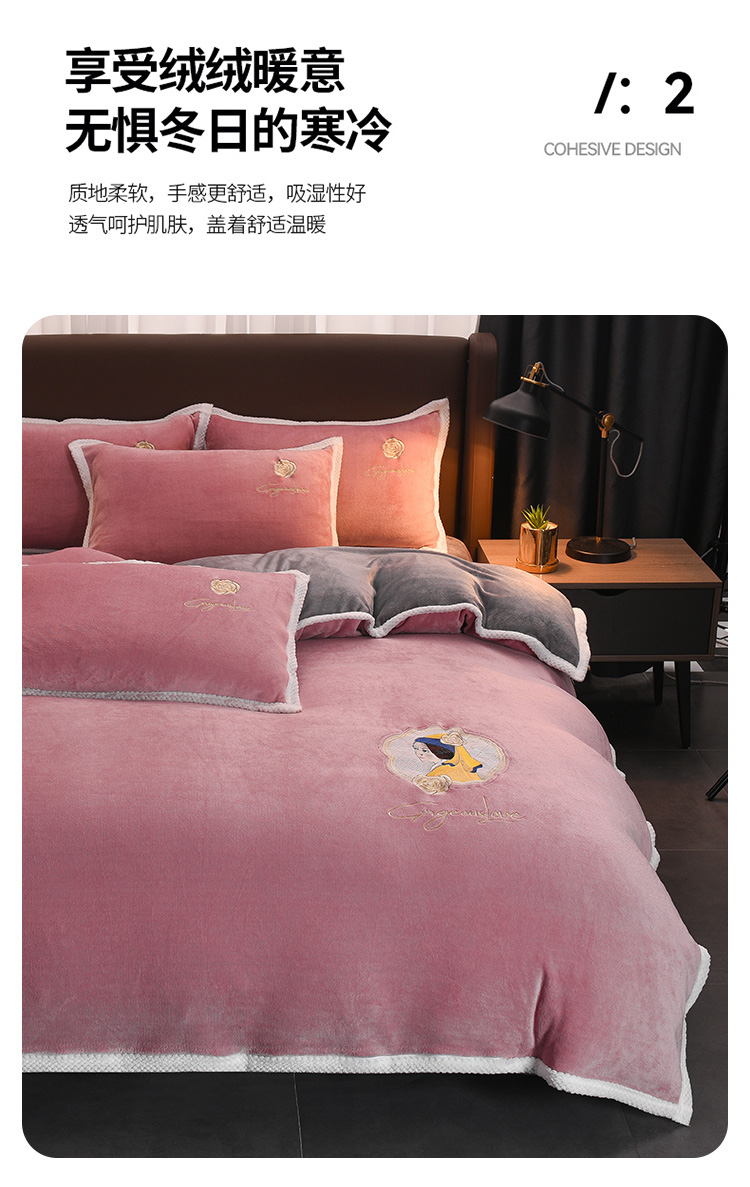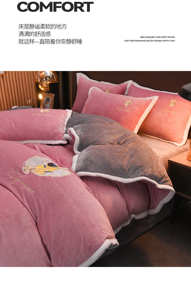 商品名称:芃成 2022新款牛奶绒刺绣包边四件套 珍珠女孩豆沙