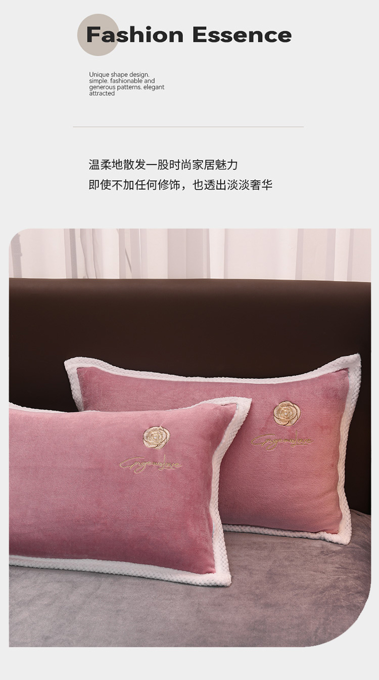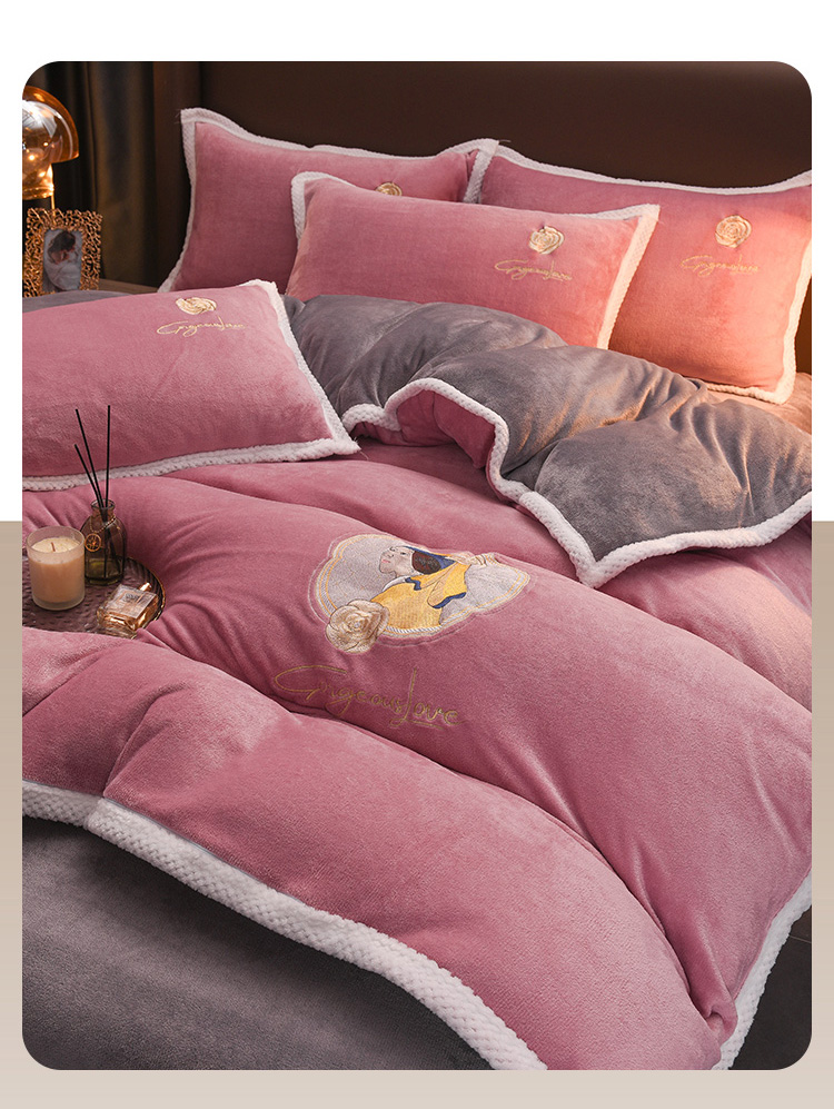 芃成 2022新款牛奶绒刺绣包边四件套 珍珠女孩豆沙
