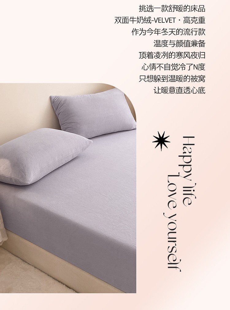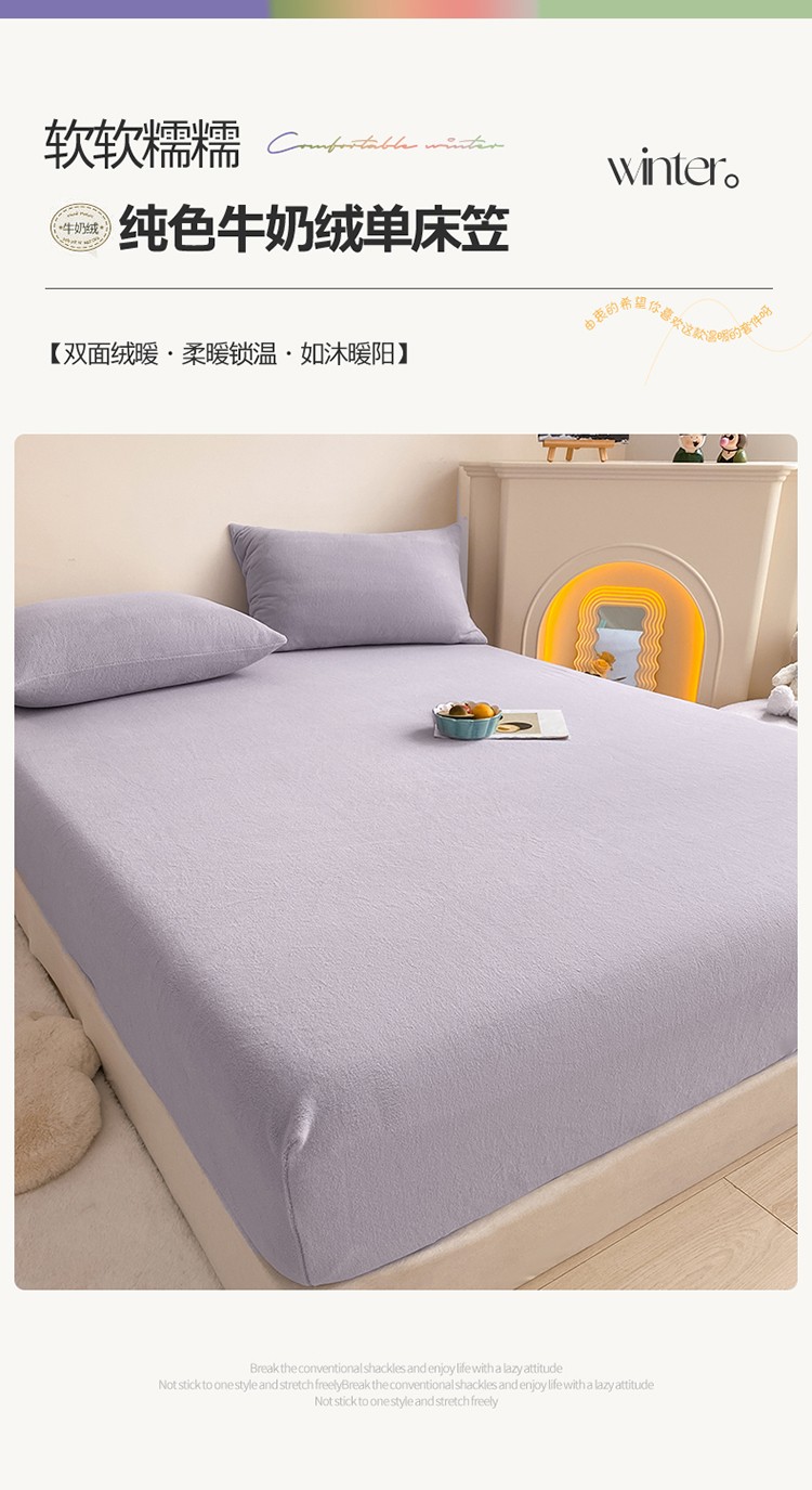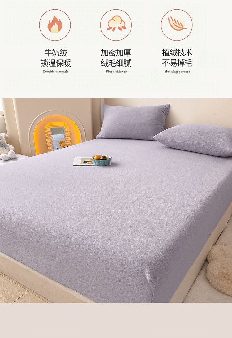 商品名称:眠帛 2022新款纯色牛奶绒单床笠 浅紫