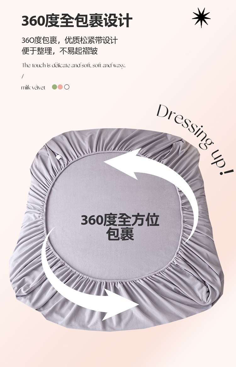 眠帛 2022新款纯色牛奶绒单床笠 浅紫