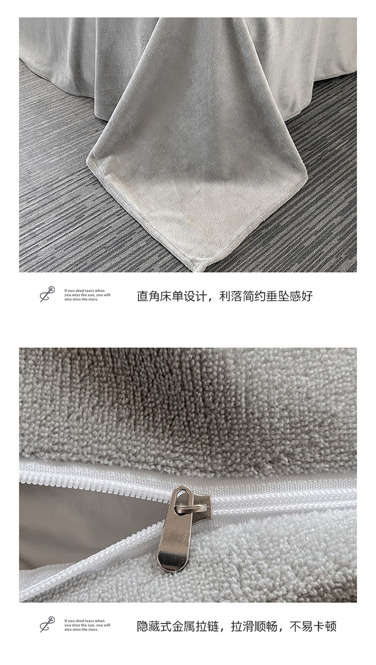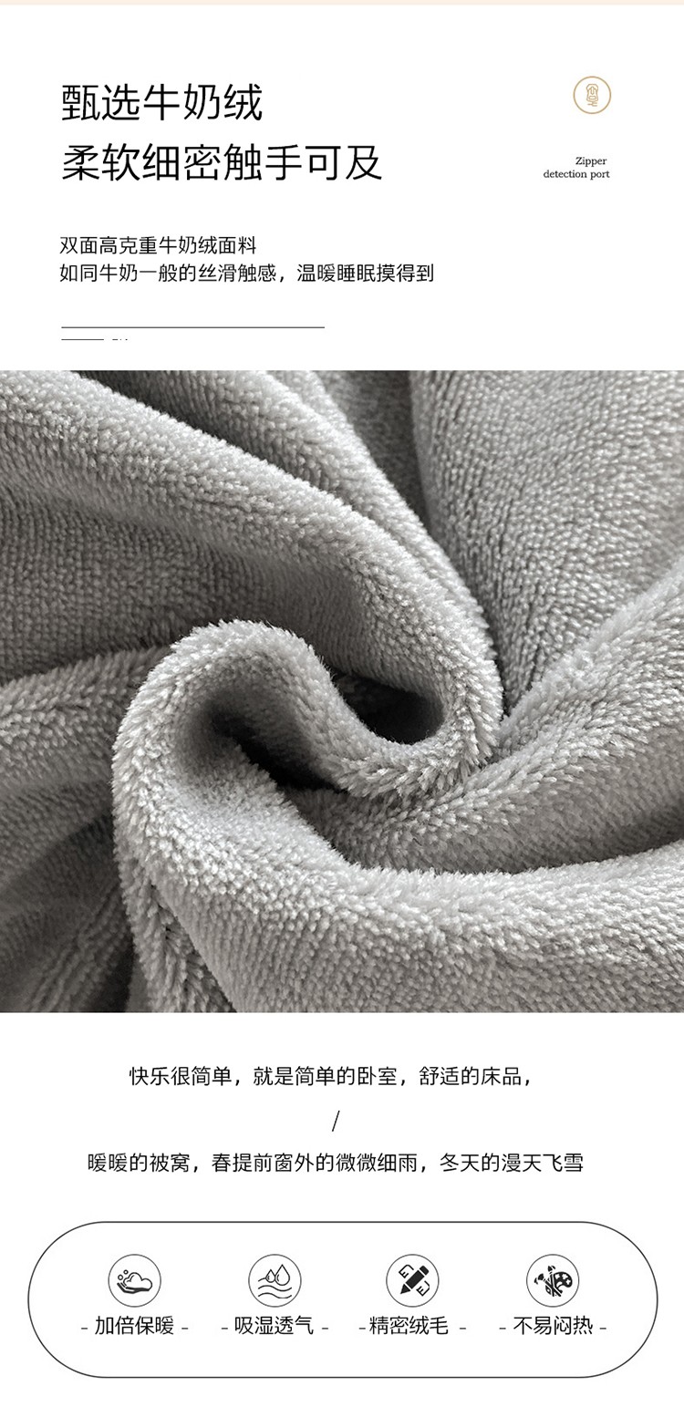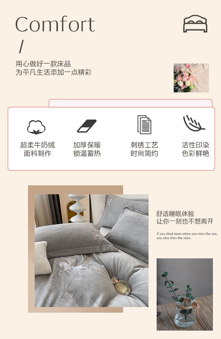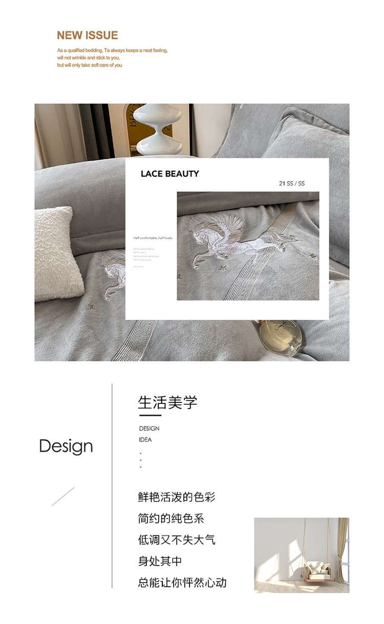 魅都新款高克重牛奶绒刺绣款四件套 浅灰