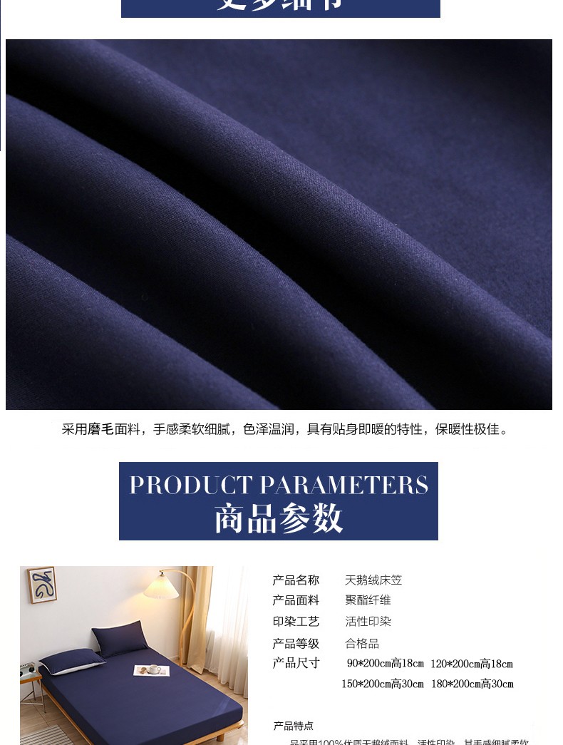 商品名称:安力森/诚臻酒店用品 2023新款单人床笠双人床笠水洗磨毛床笠 藏青