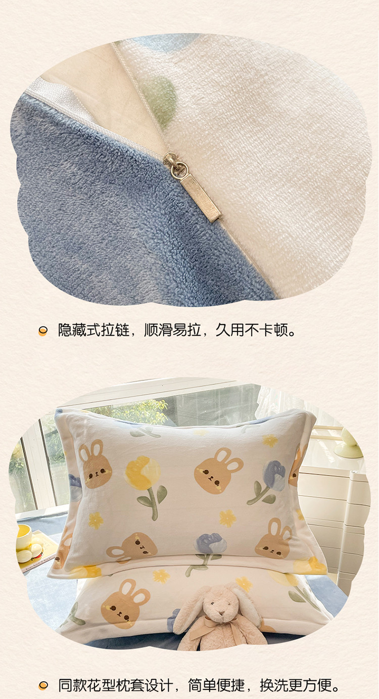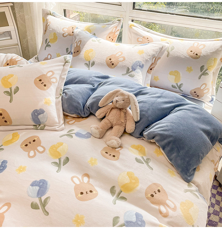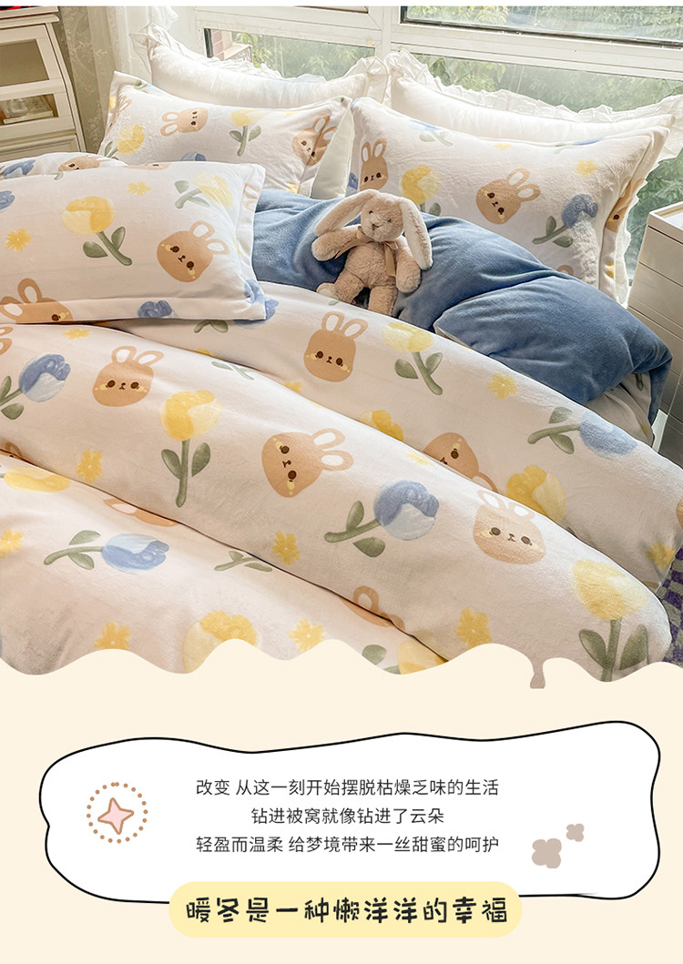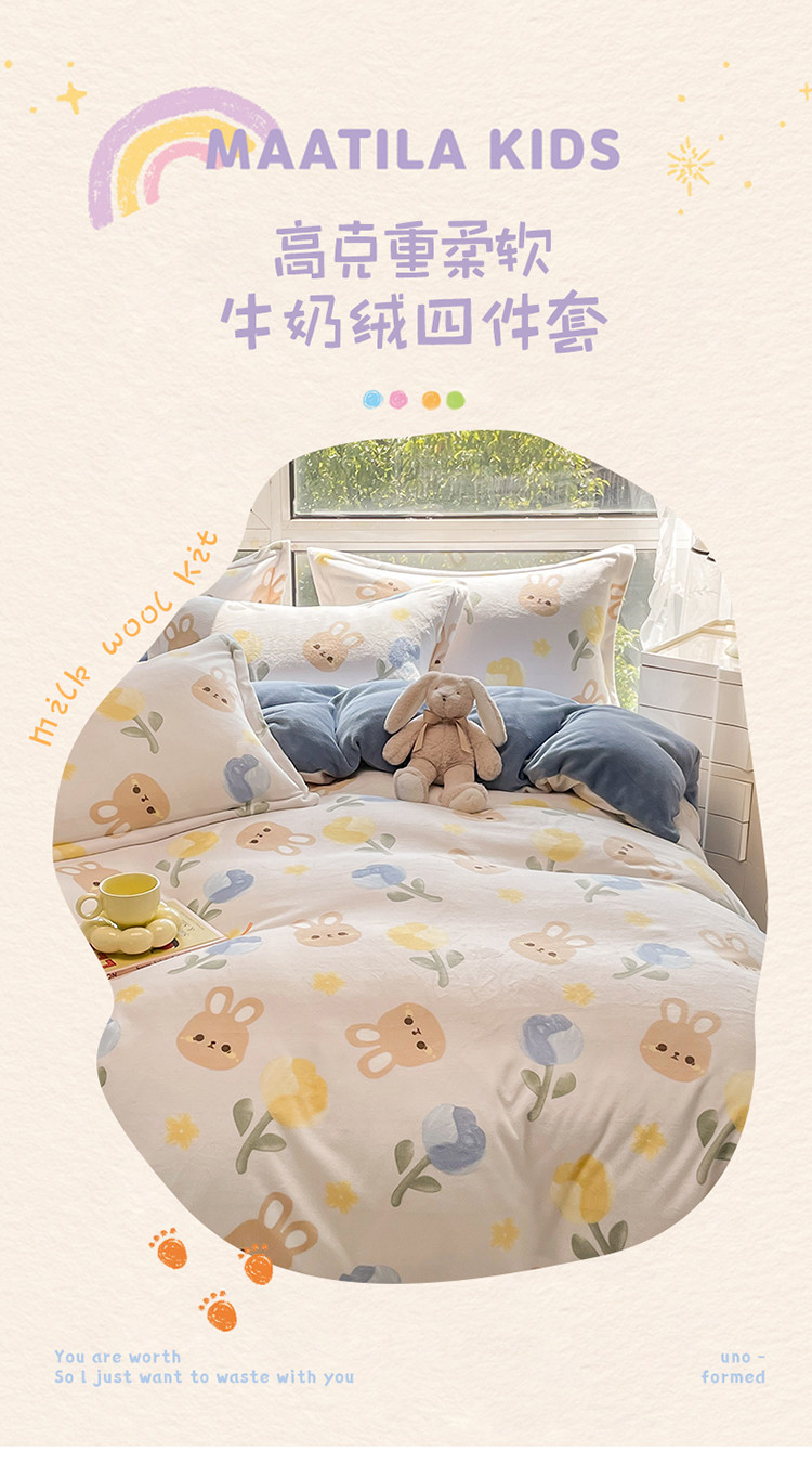 塔塔2025新款牛奶绒圆网系列四件套 奶油盐系兔