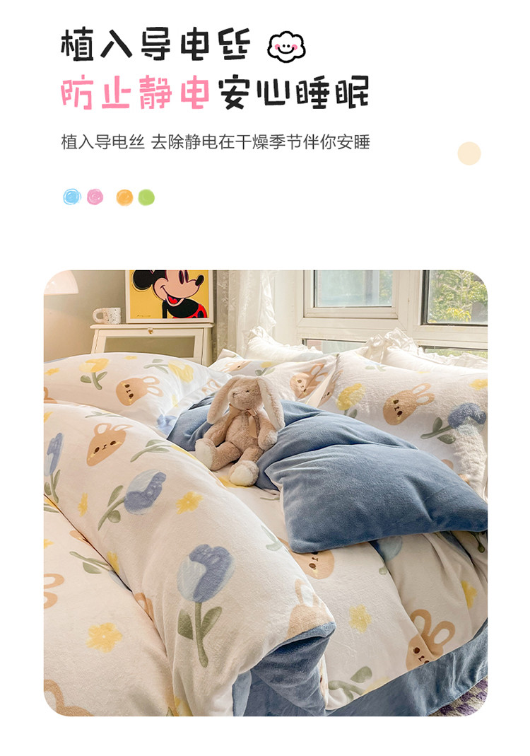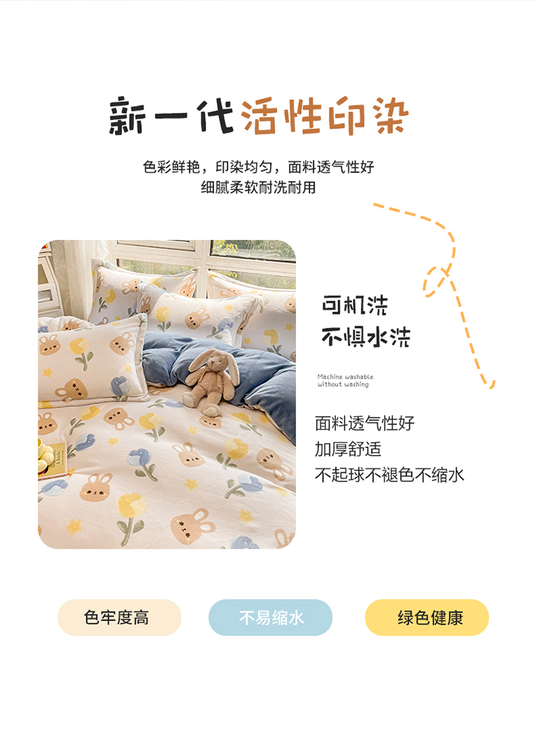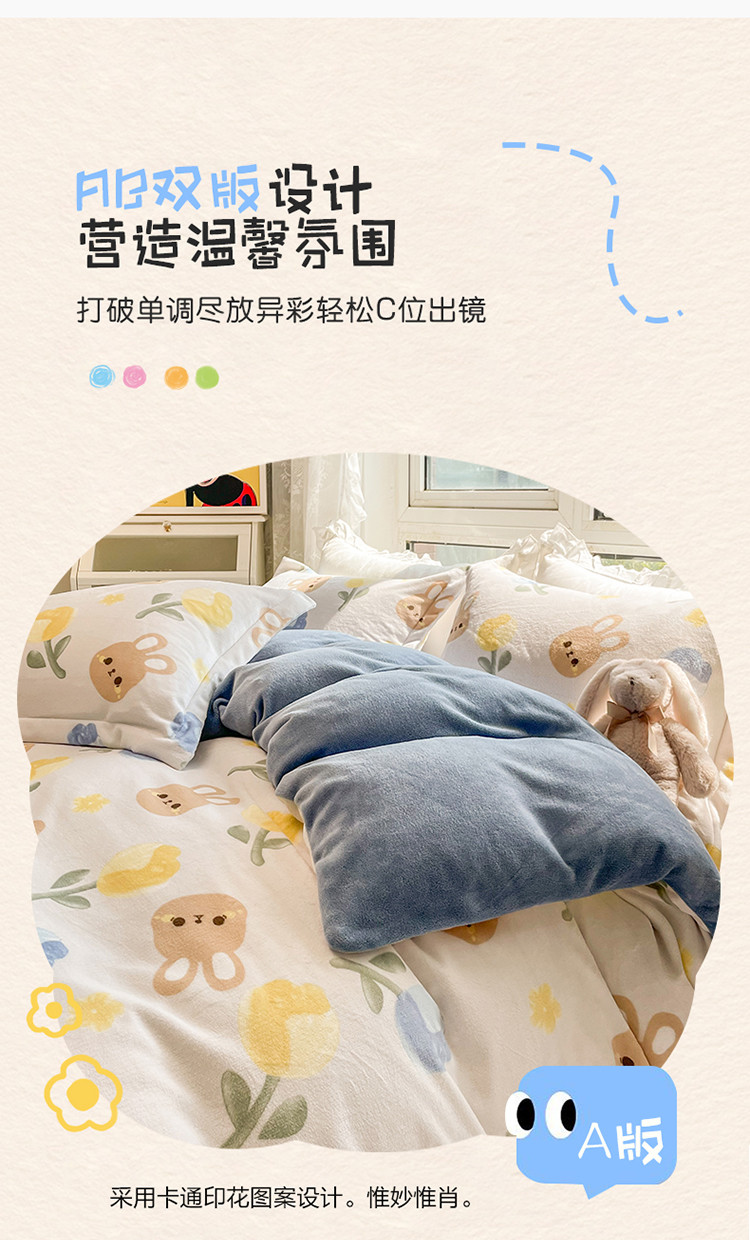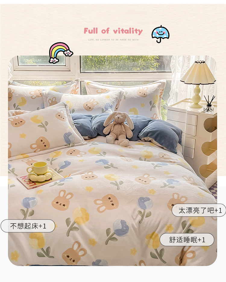 商品名称:塔塔2025新款牛奶绒圆网系列四件套 奶油盐系兔