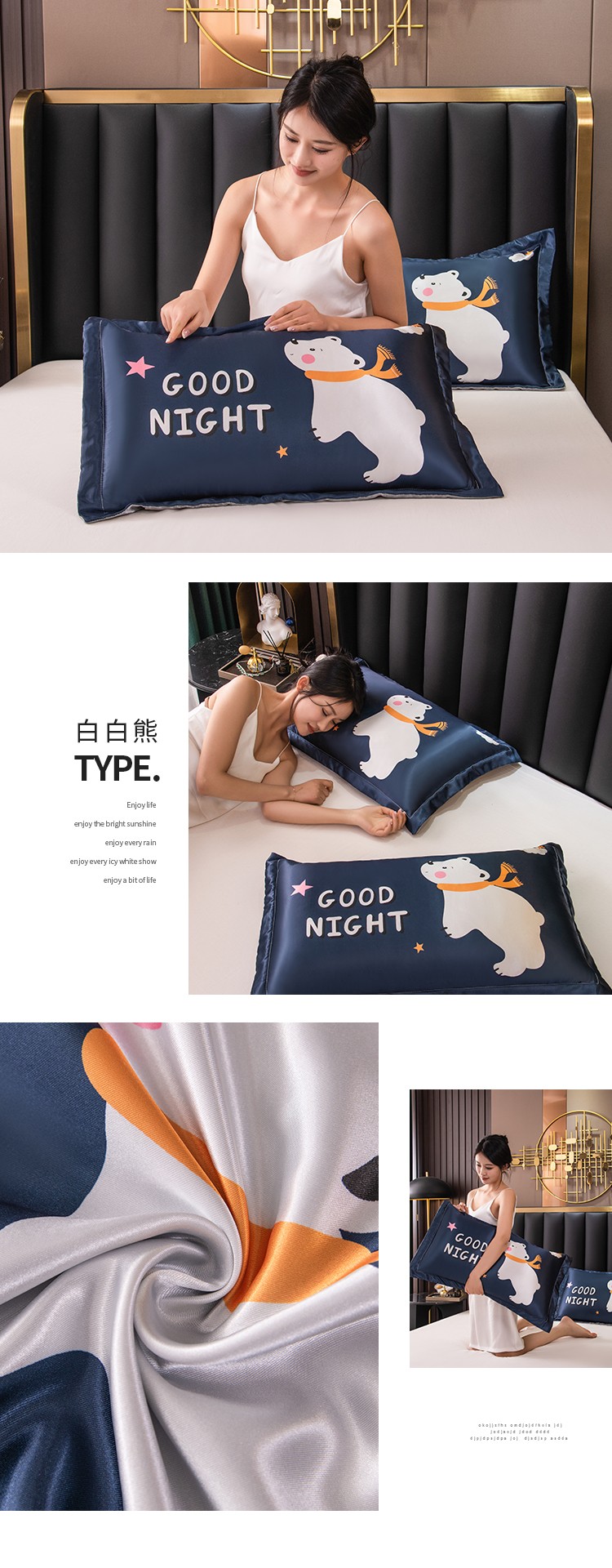 商品名称:圣比熊 大版双人可水洗冰丝夏季单人枕头套丝滑宿舍枕芯套白白熊
