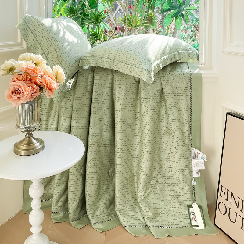 匠心 2023新款莫代尔法式镂空夏被三件套 简画-绿