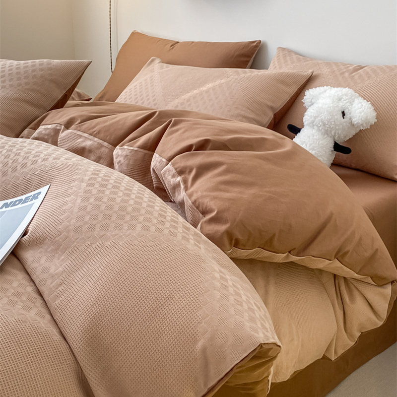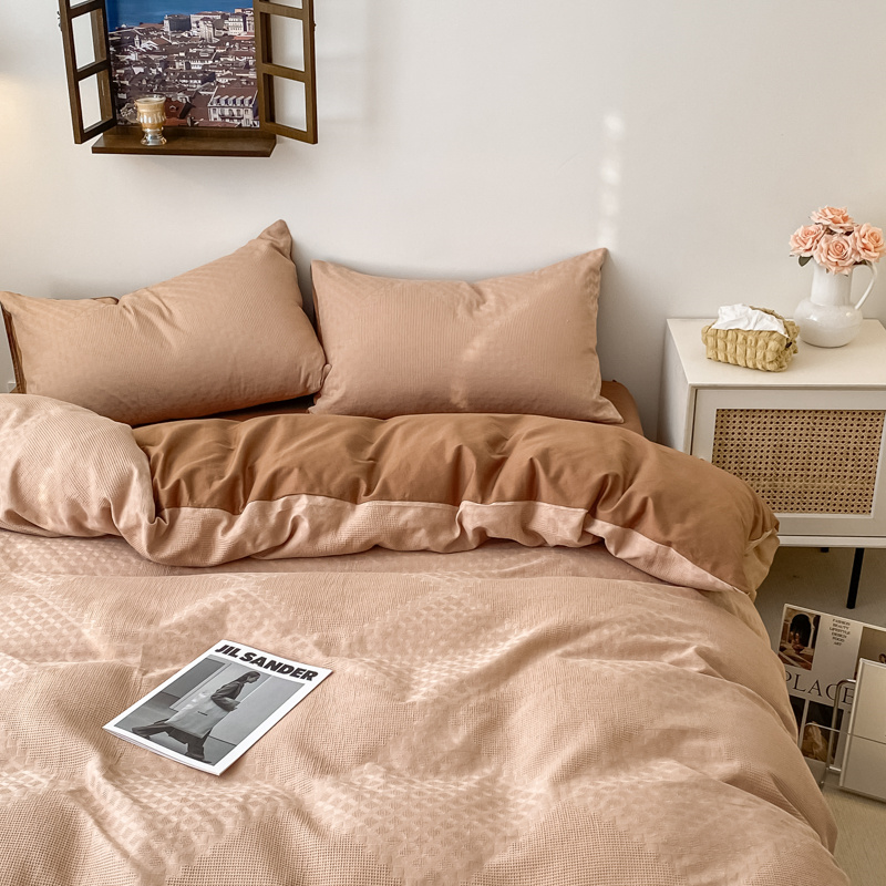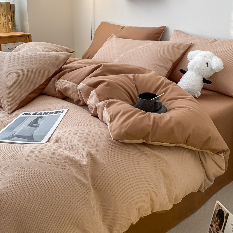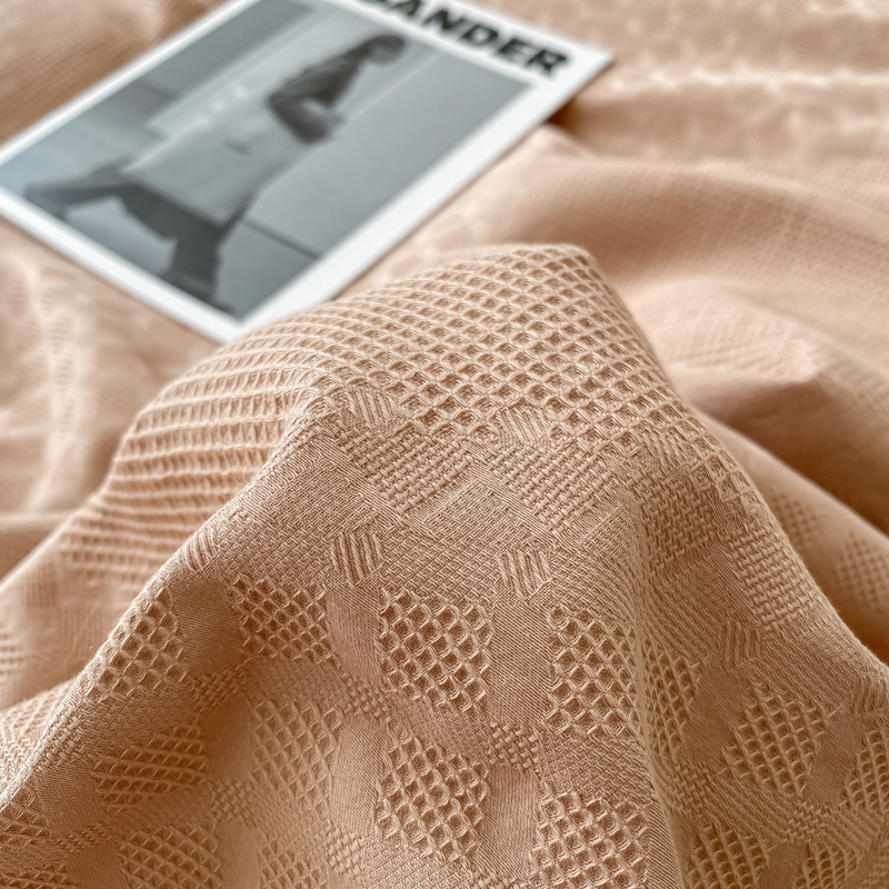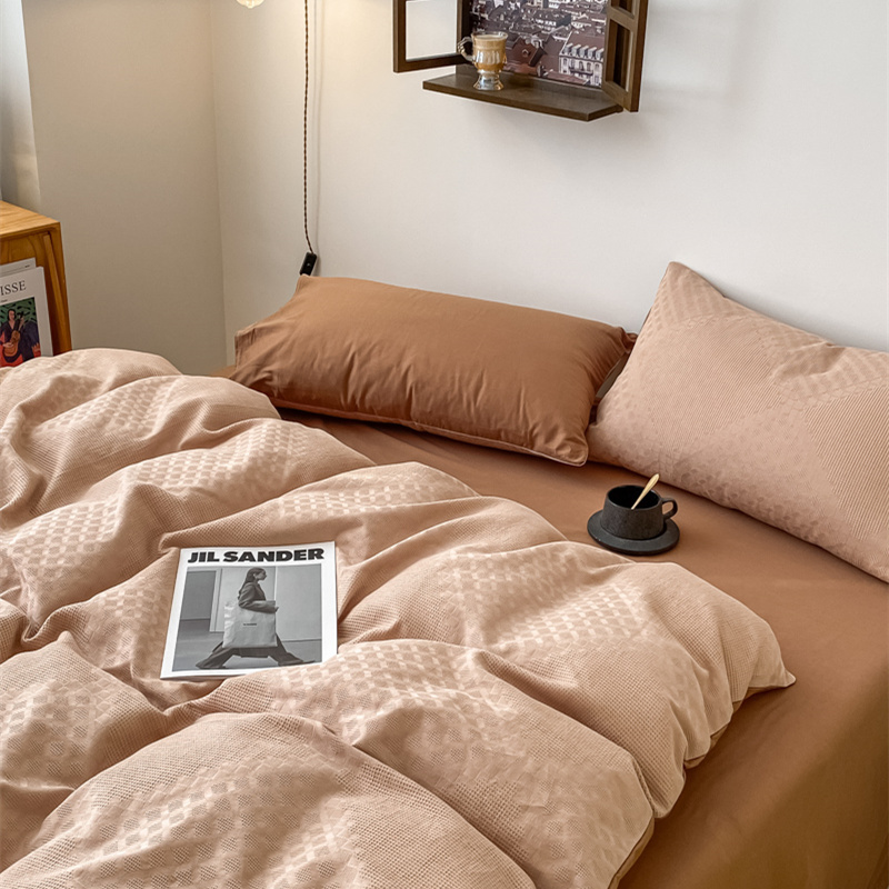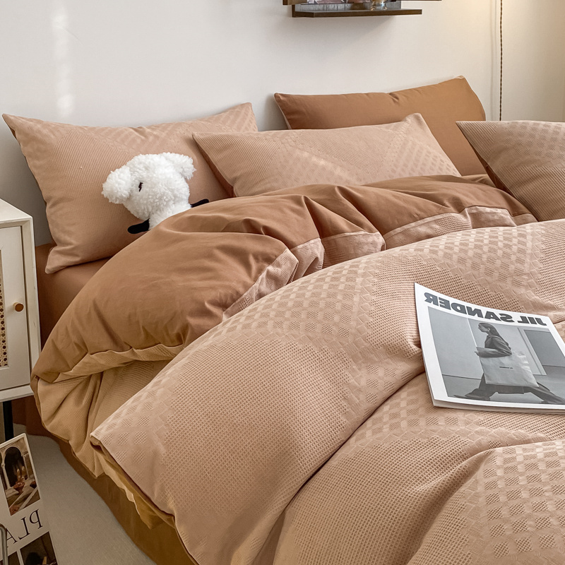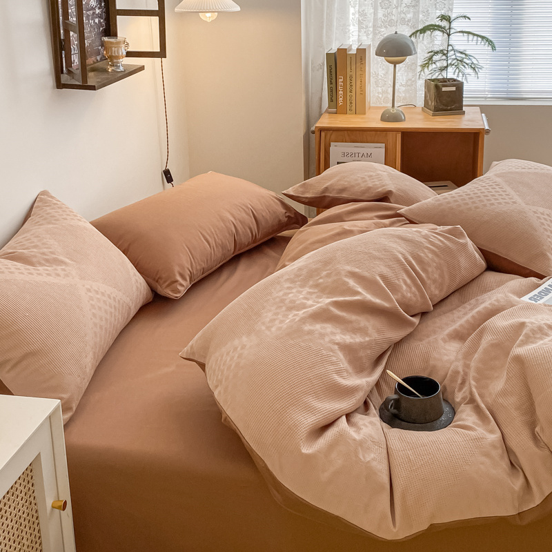 商品名称:金丝鸟 2023新款简约舒适华夫格四件套 简约卡其格驼