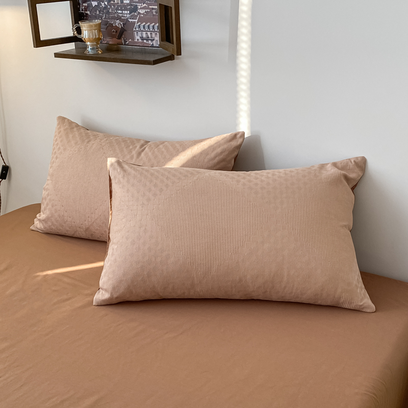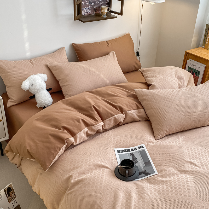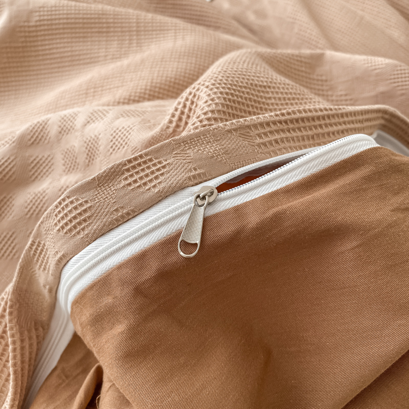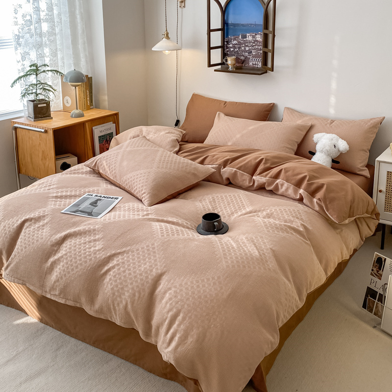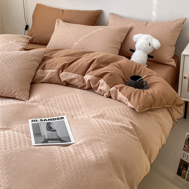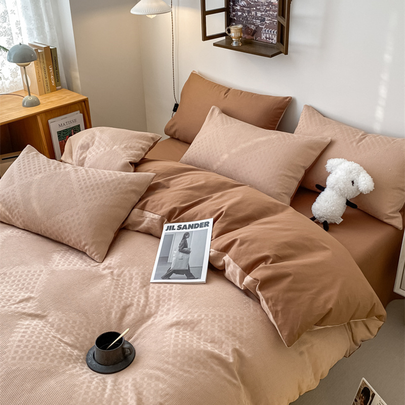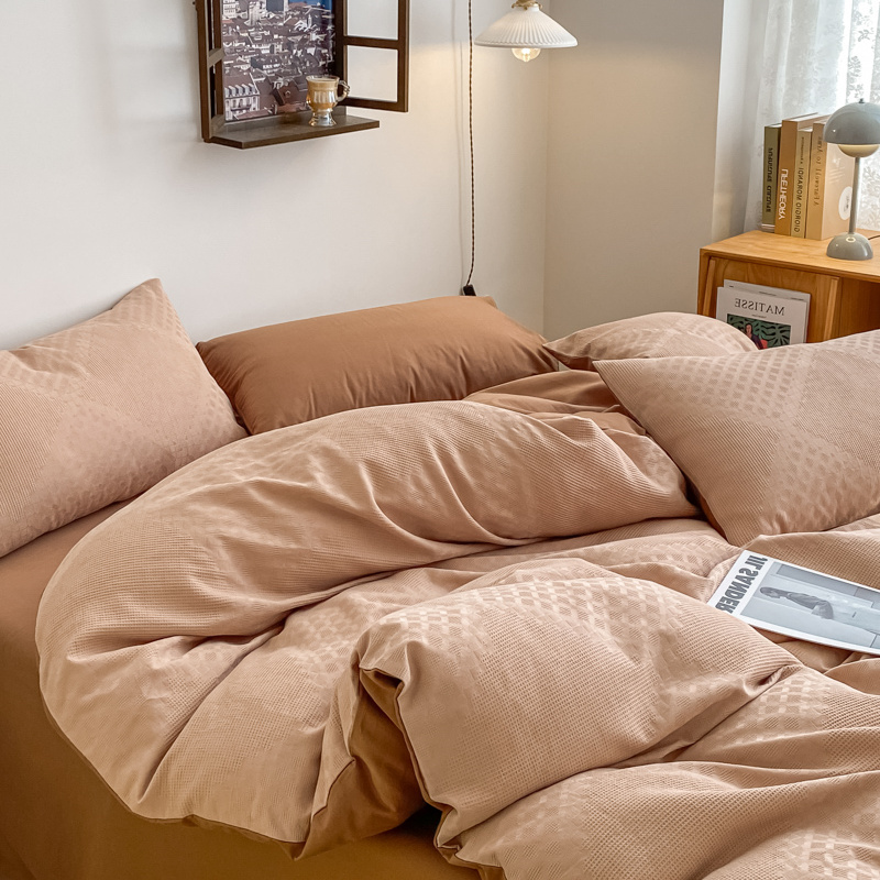 商品名称:金丝鸟 2023新款简约舒适华夫格四件套 简约卡其格驼