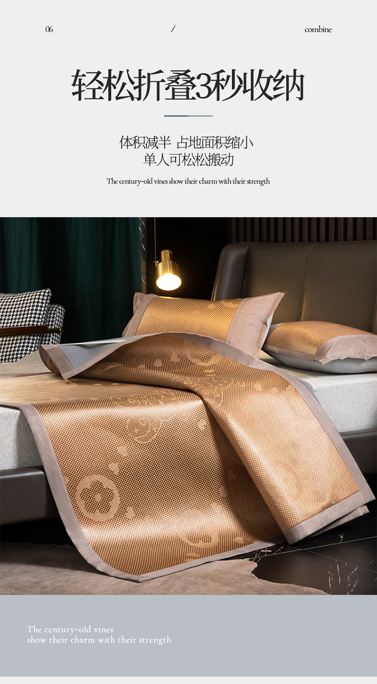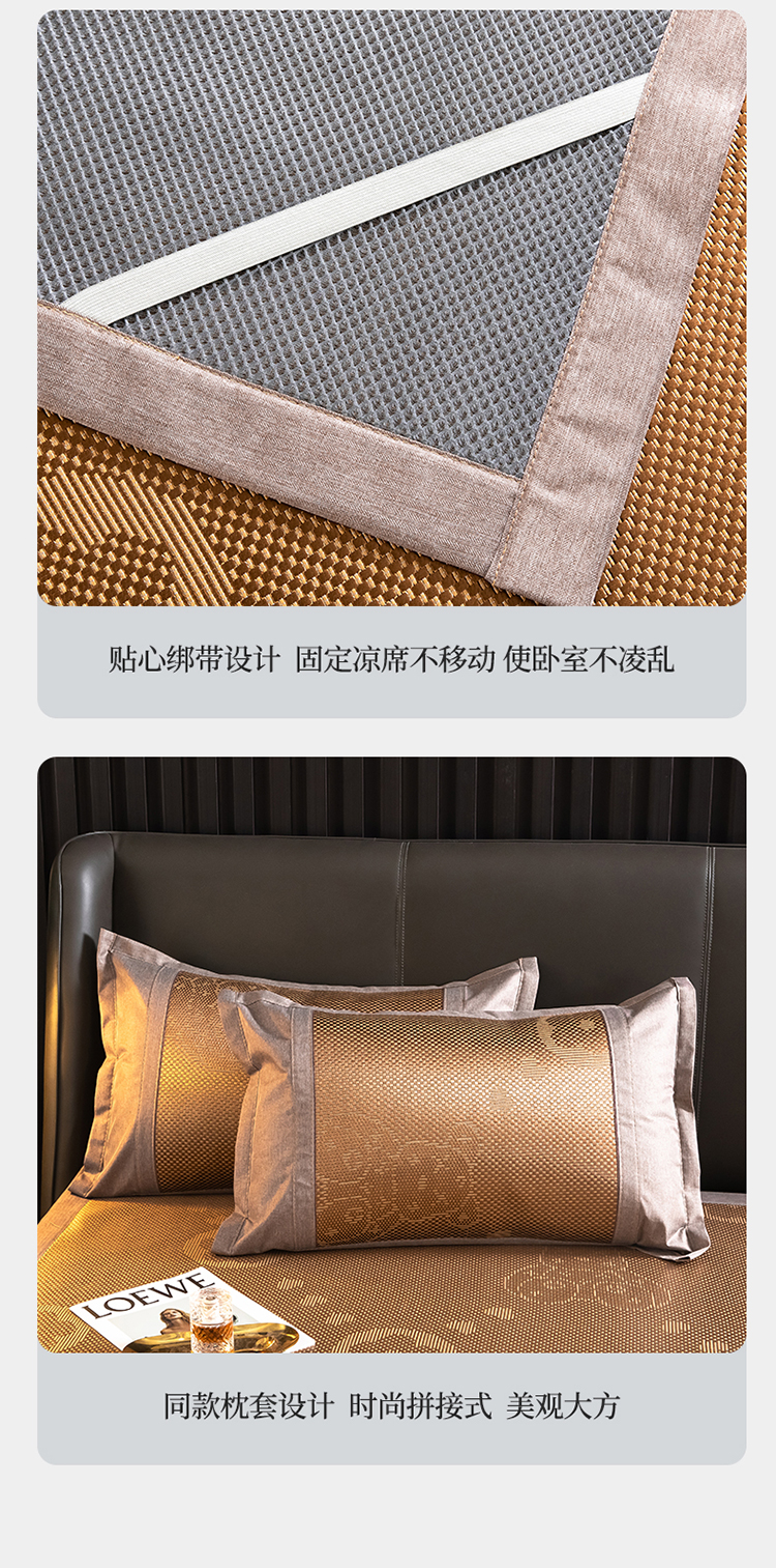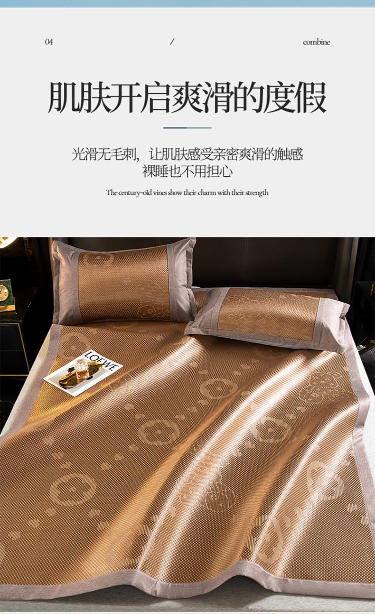 商品名称:宜派 2023新款碳光冰藤席三件套 花卉咖