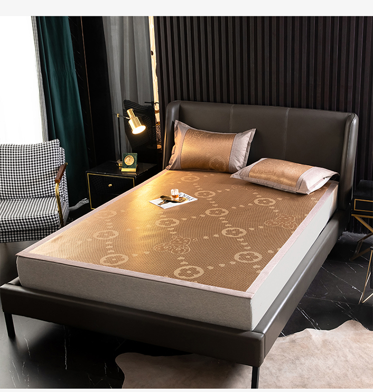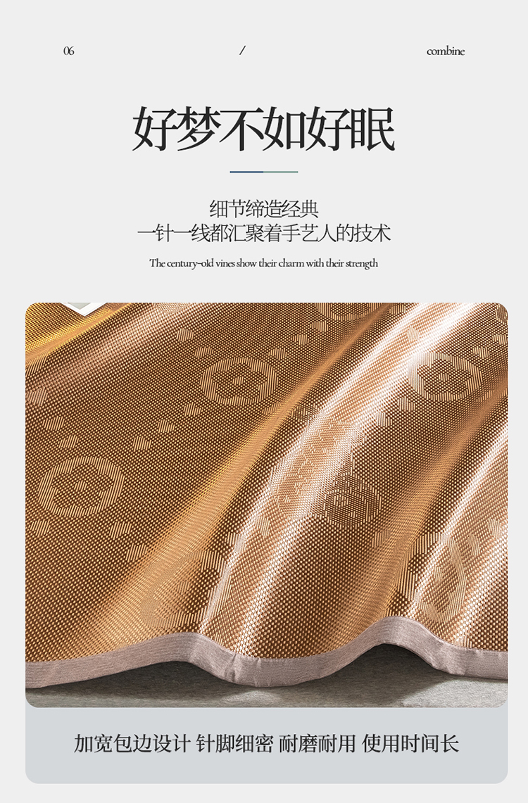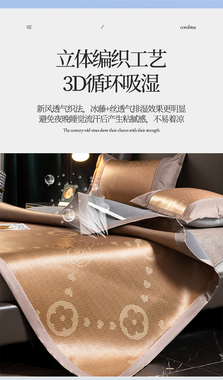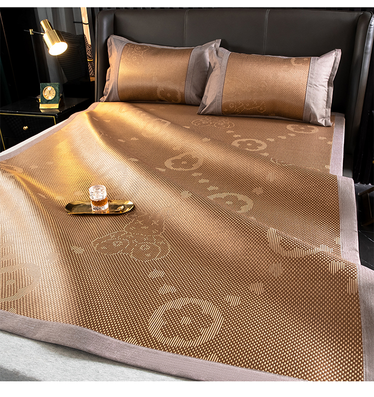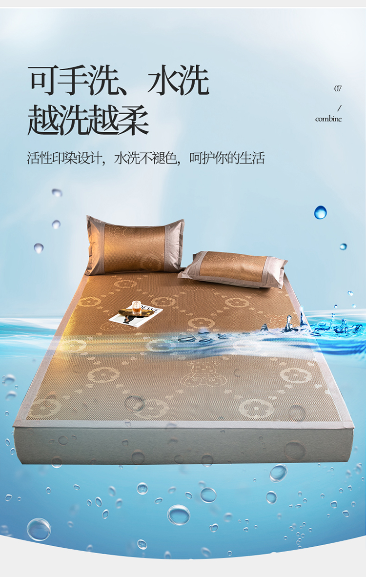 商品名称:宜派 2023新款碳光冰藤席三件套 花卉咖