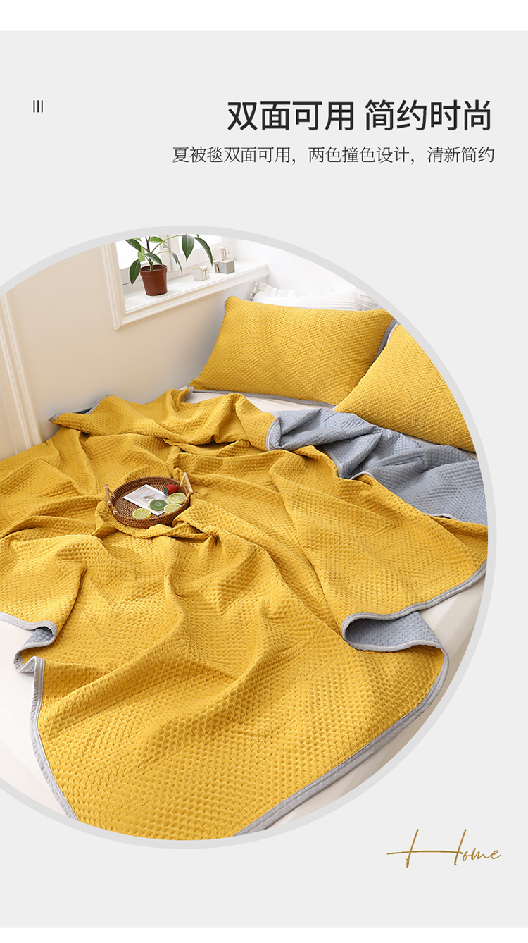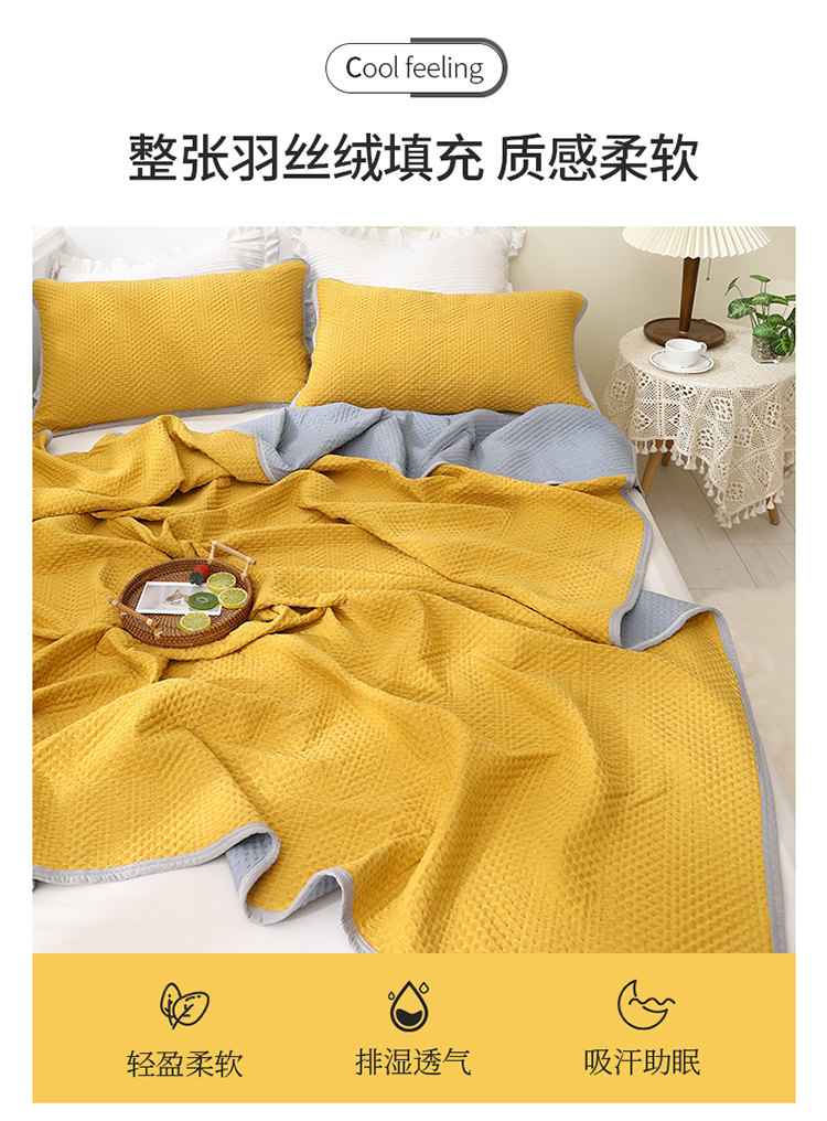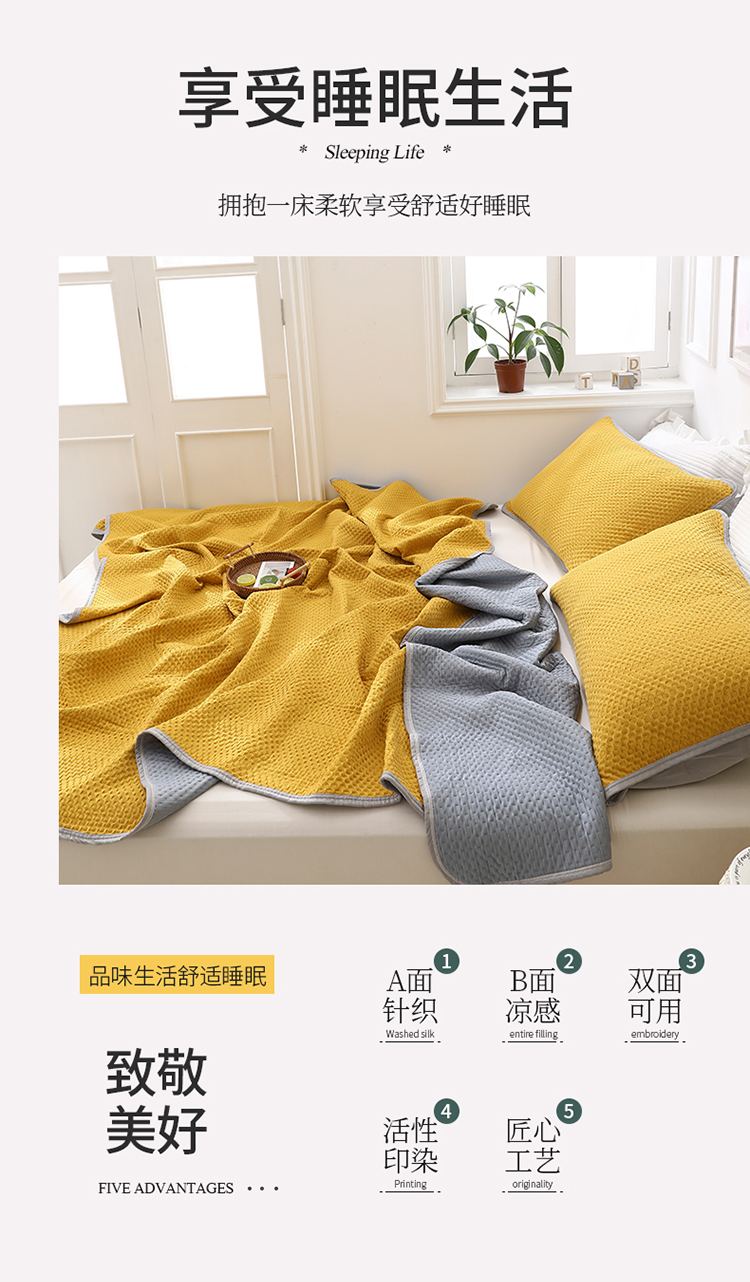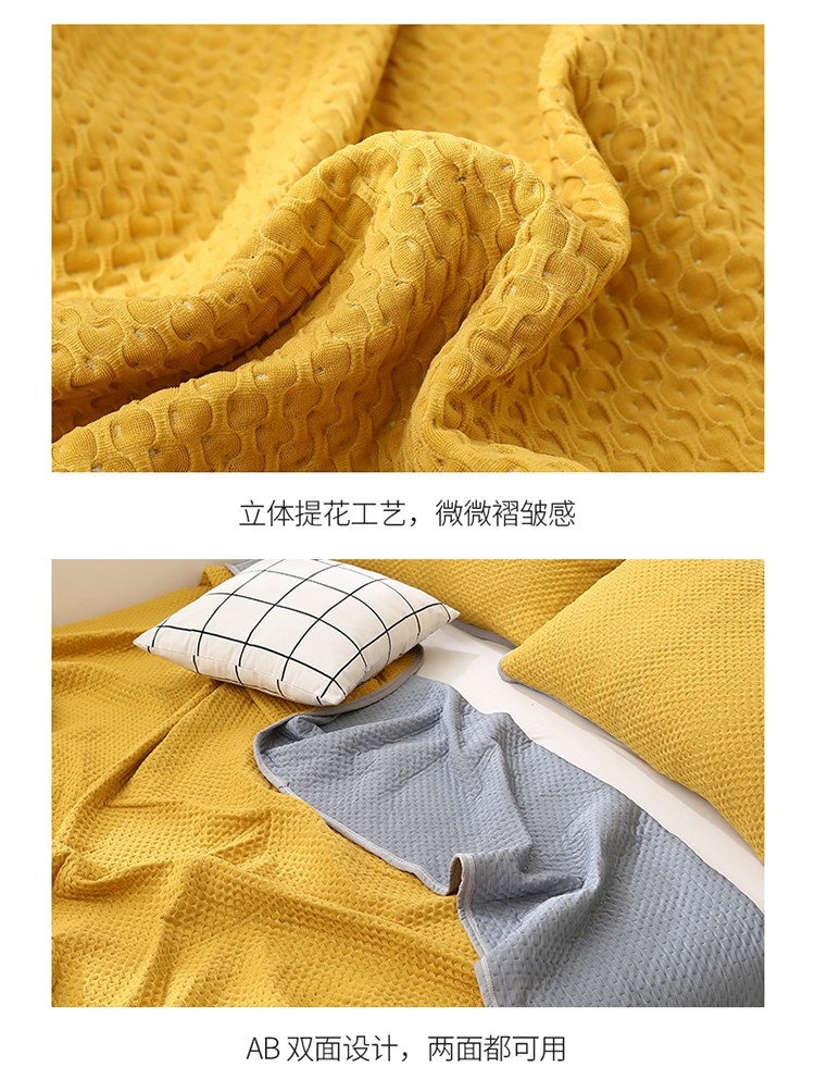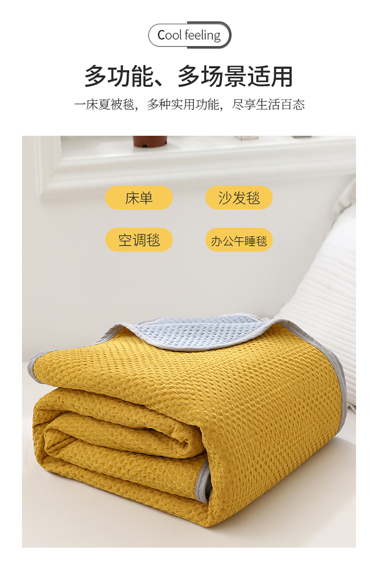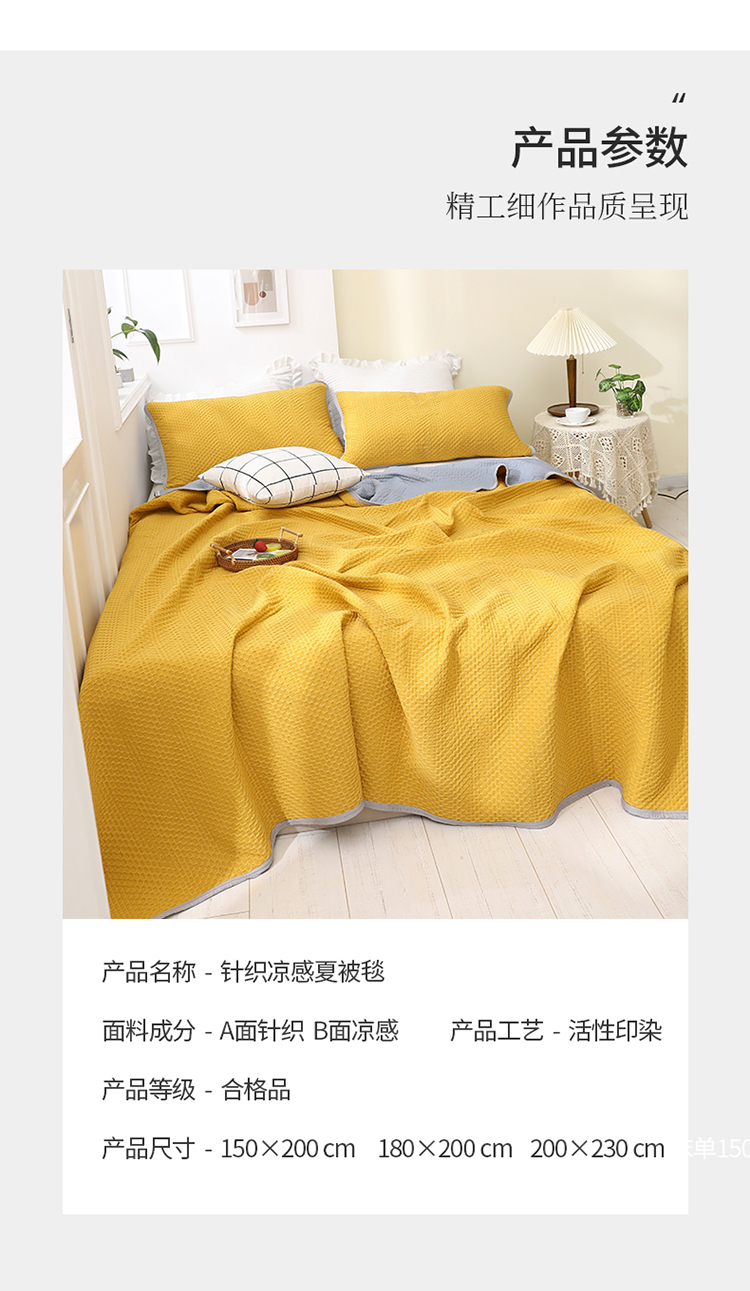 商品名称:琪琪阁2023新款华夫格针织提花亲肤舒适多功能凉感夏被 杏黄
