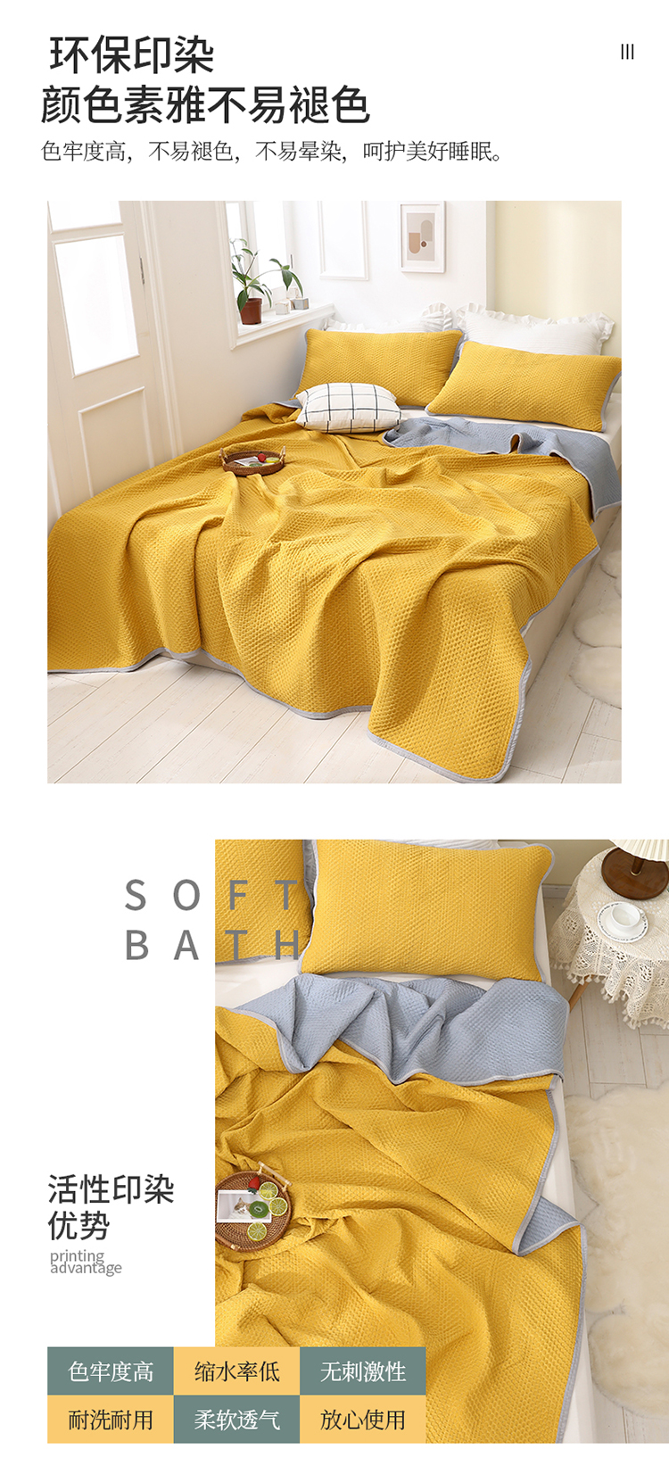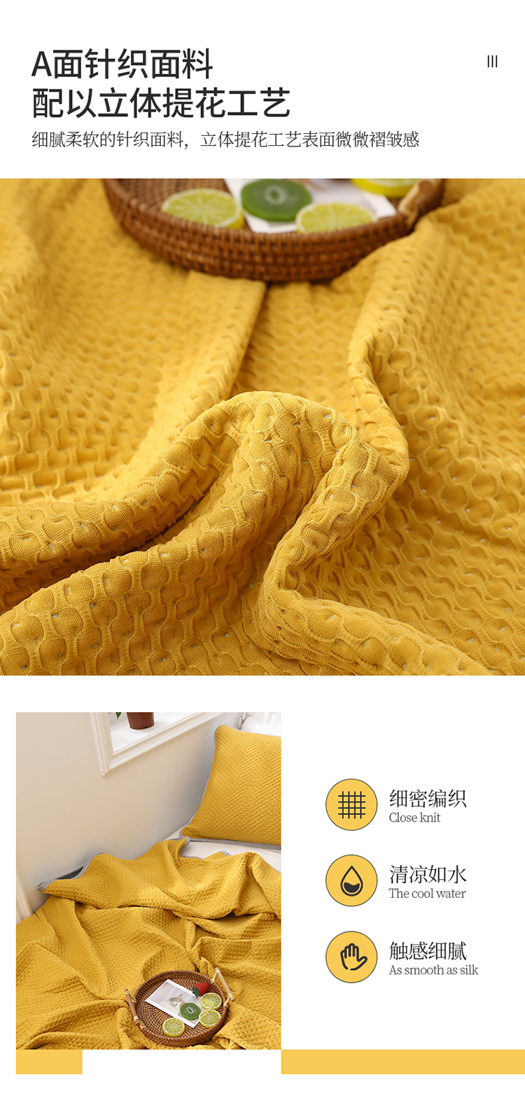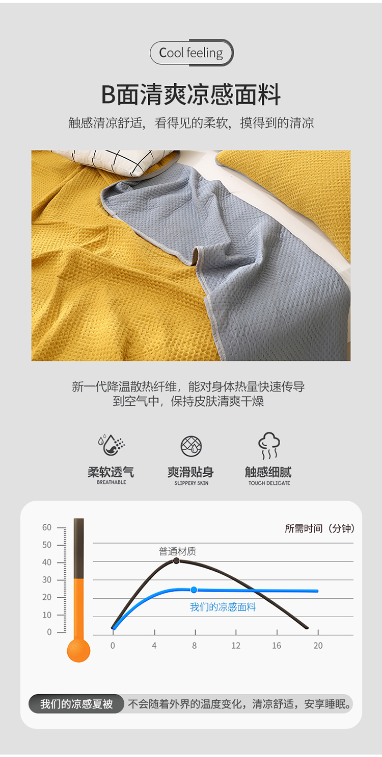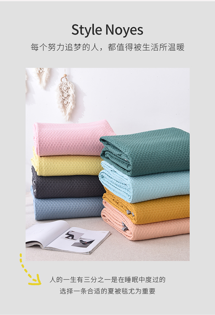 商品名称:琪琪阁2023新款华夫格针织提花亲肤舒适多功能凉感夏被 杏黄