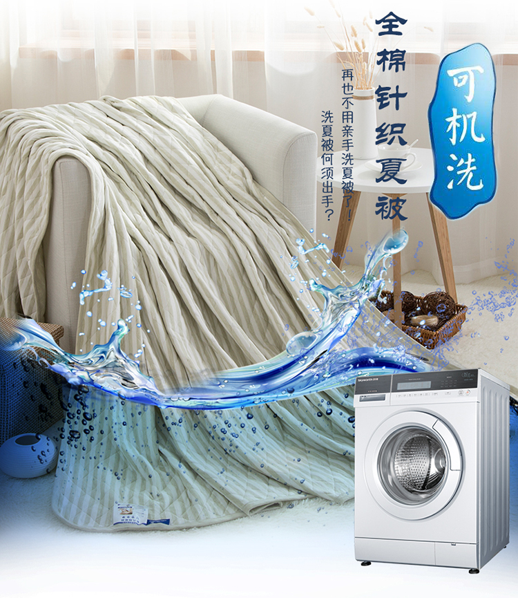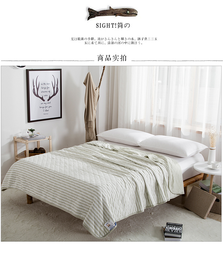 商品名称:琪琪阁2023新款宽条纹针织棉夏被盖毯 浅绿条纹