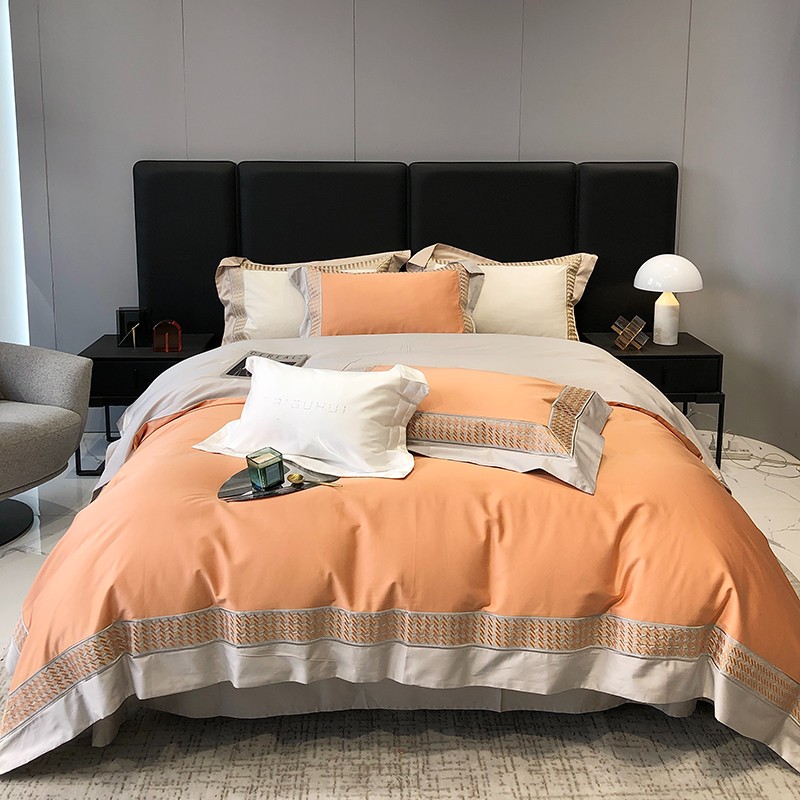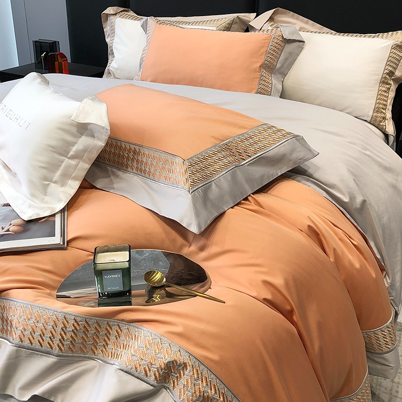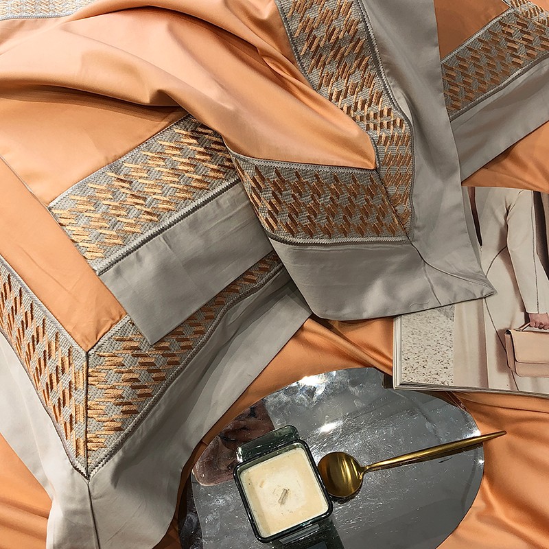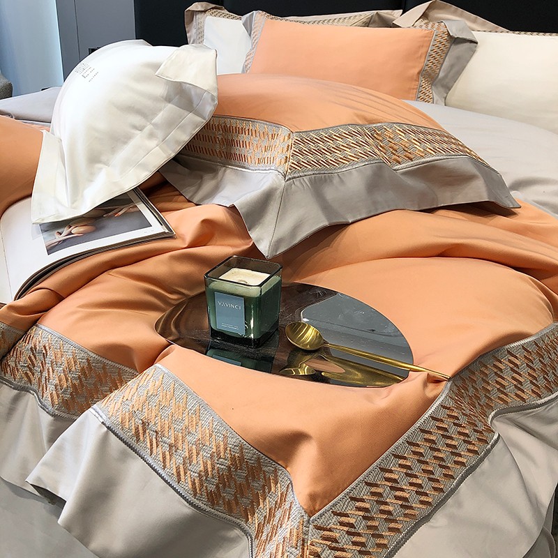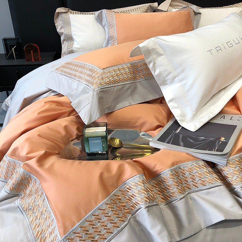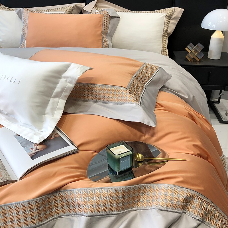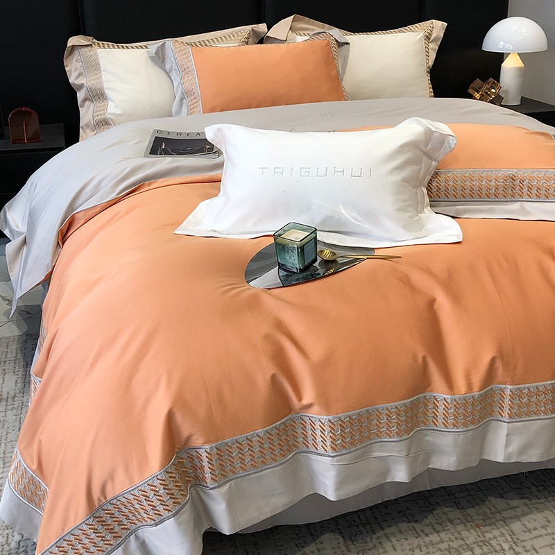 商品名称:太古汇 2023新款A类长绒棉刺绣千鸟格四件套-格伦格系列 长绒棉格伦格-橙色