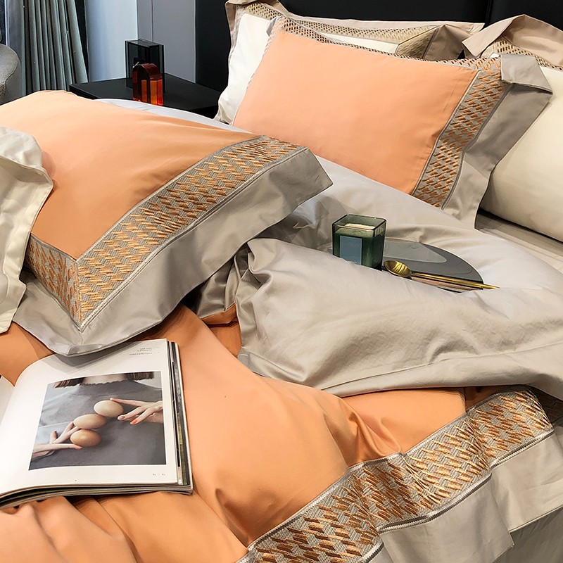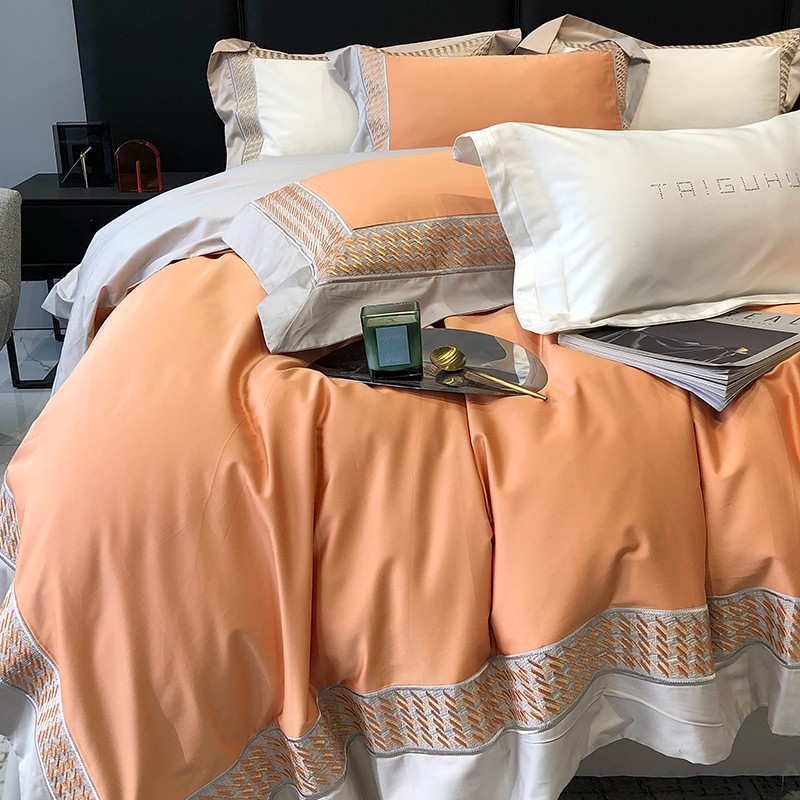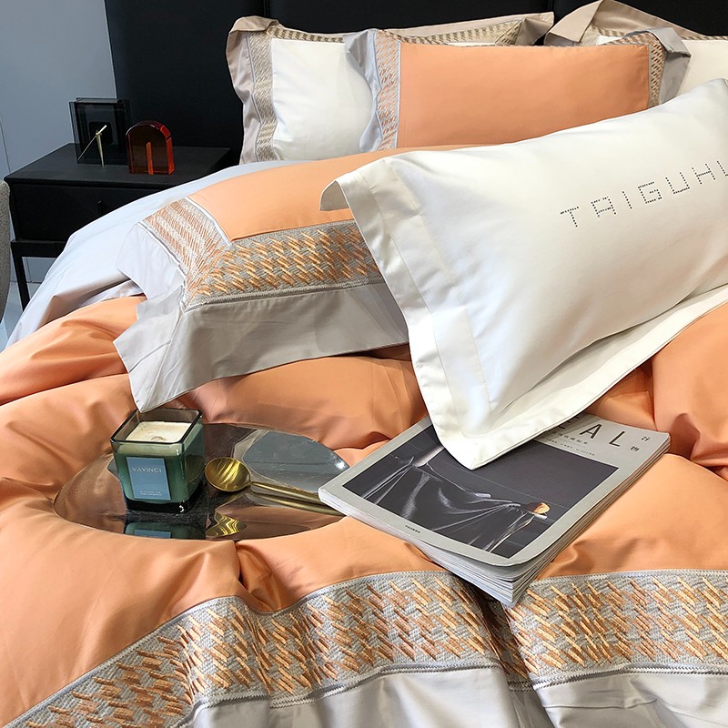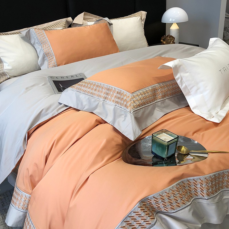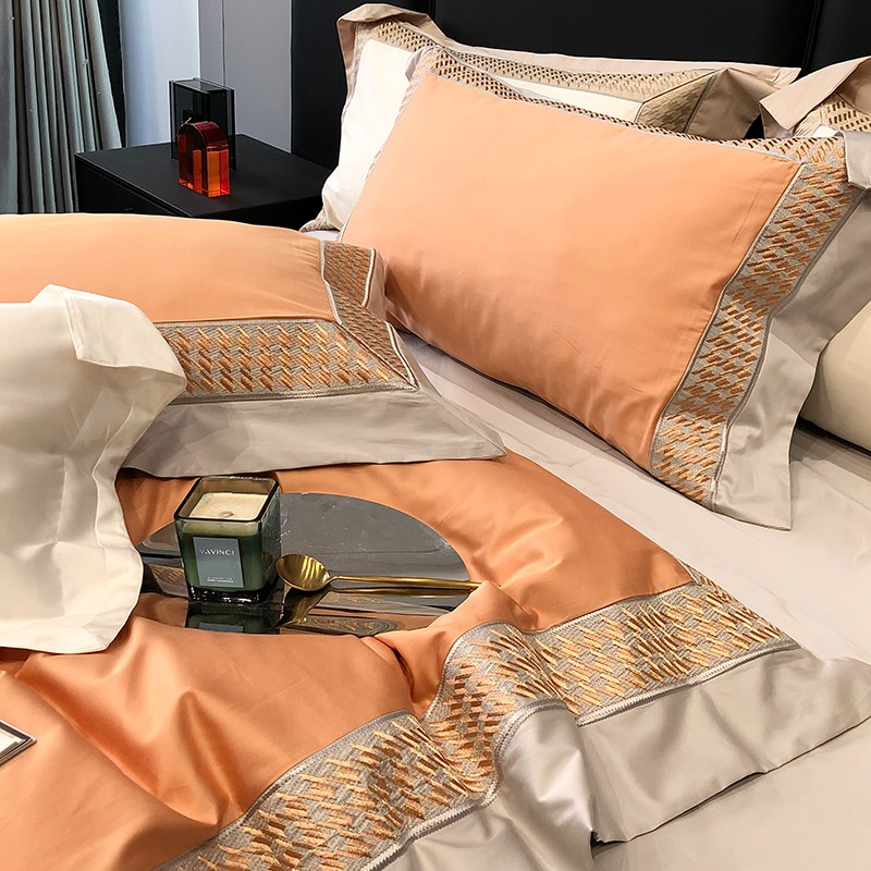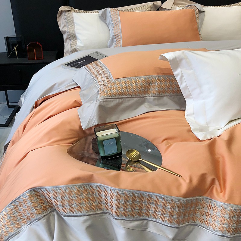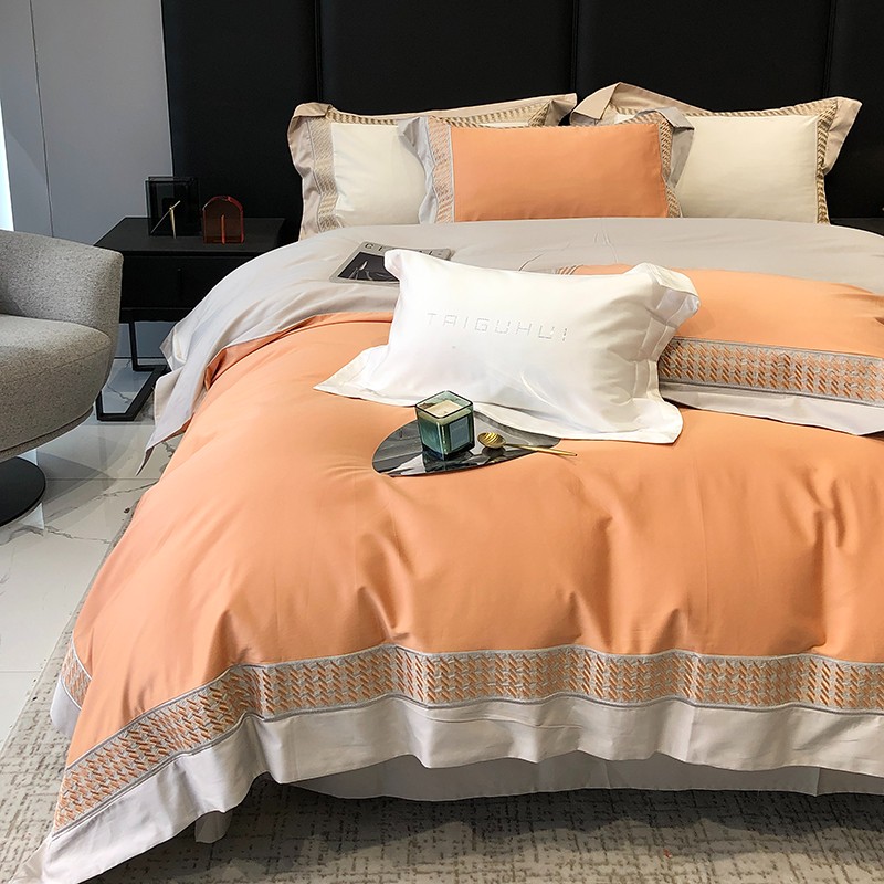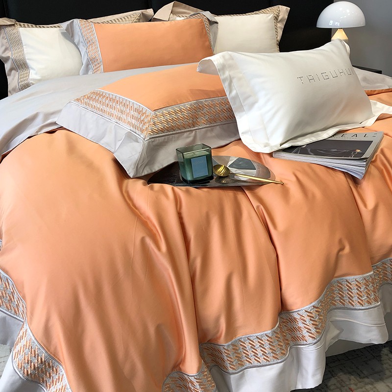 商品名称:太古汇 2023新款A类长绒棉刺绣千鸟格四件套-格伦格系列 长绒棉格伦格-橙色