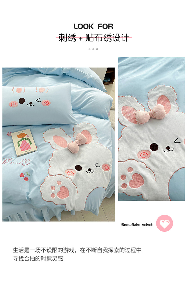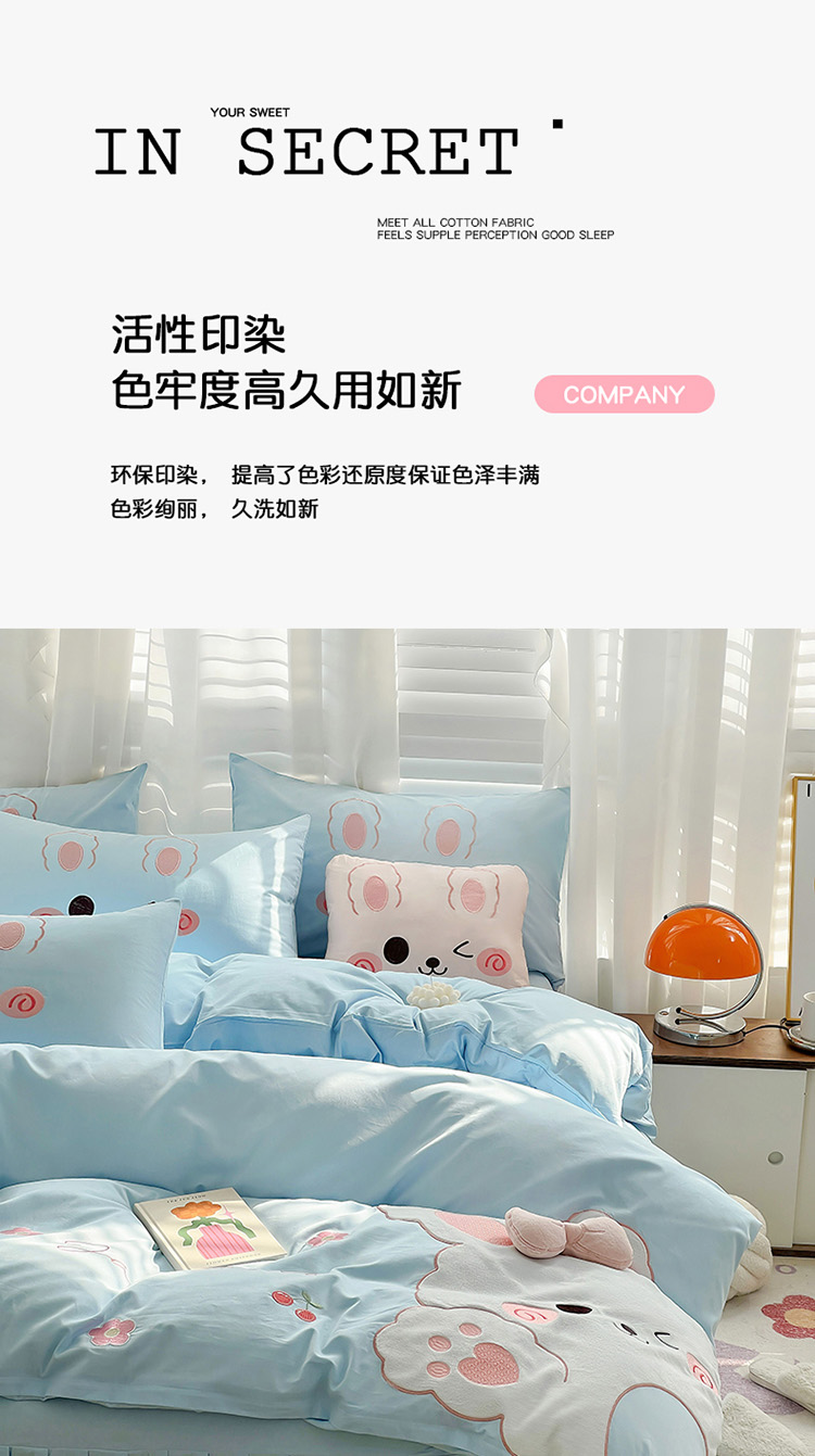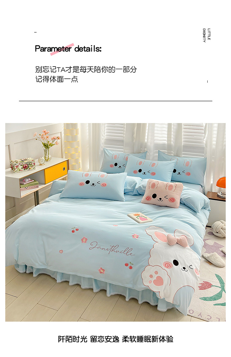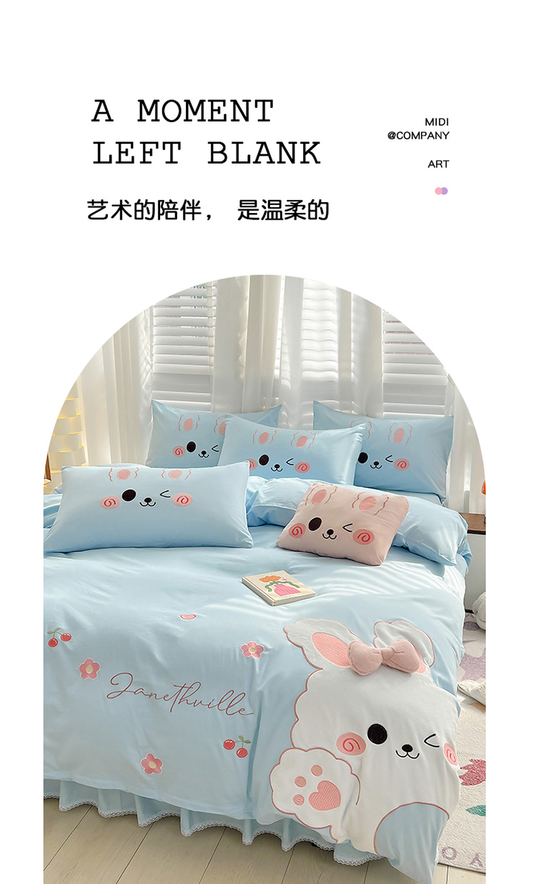 当前位置: 91家纺网 > 商品网购 > 床品套件 > 四件套 > 全棉普通四件套 > 亲亲公主 2025新款全棉可爱卡通贴布绣四件套-可爱兔-蓝(配蝴蝶结)