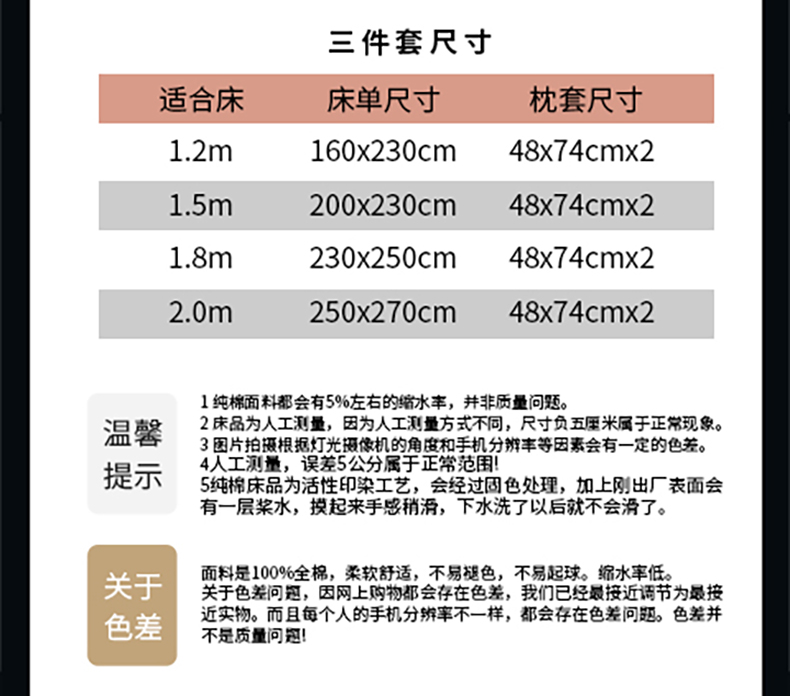床单/床笠尺寸