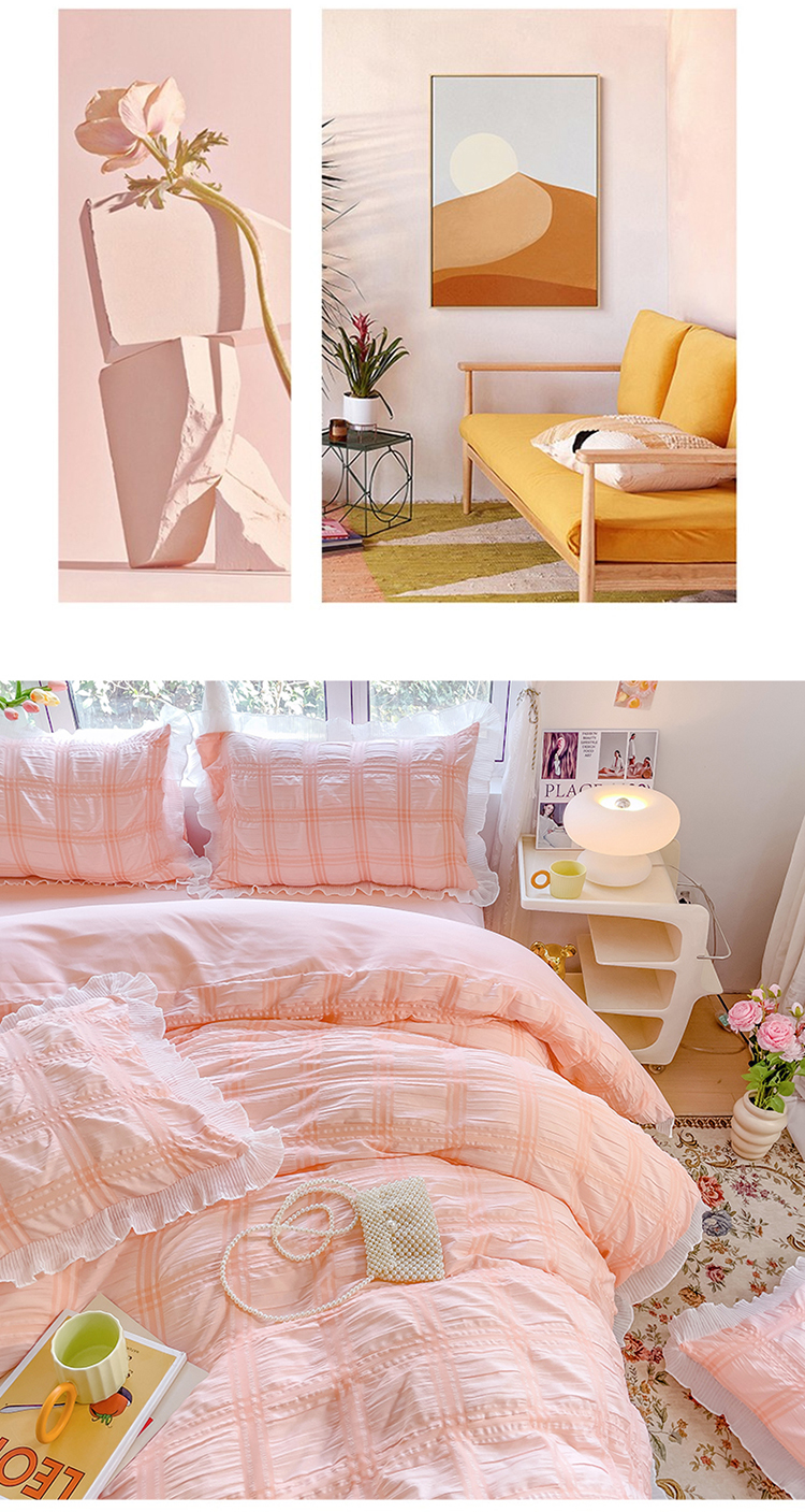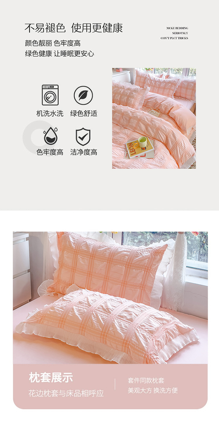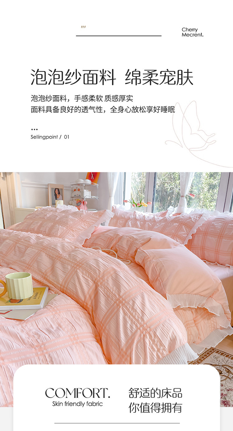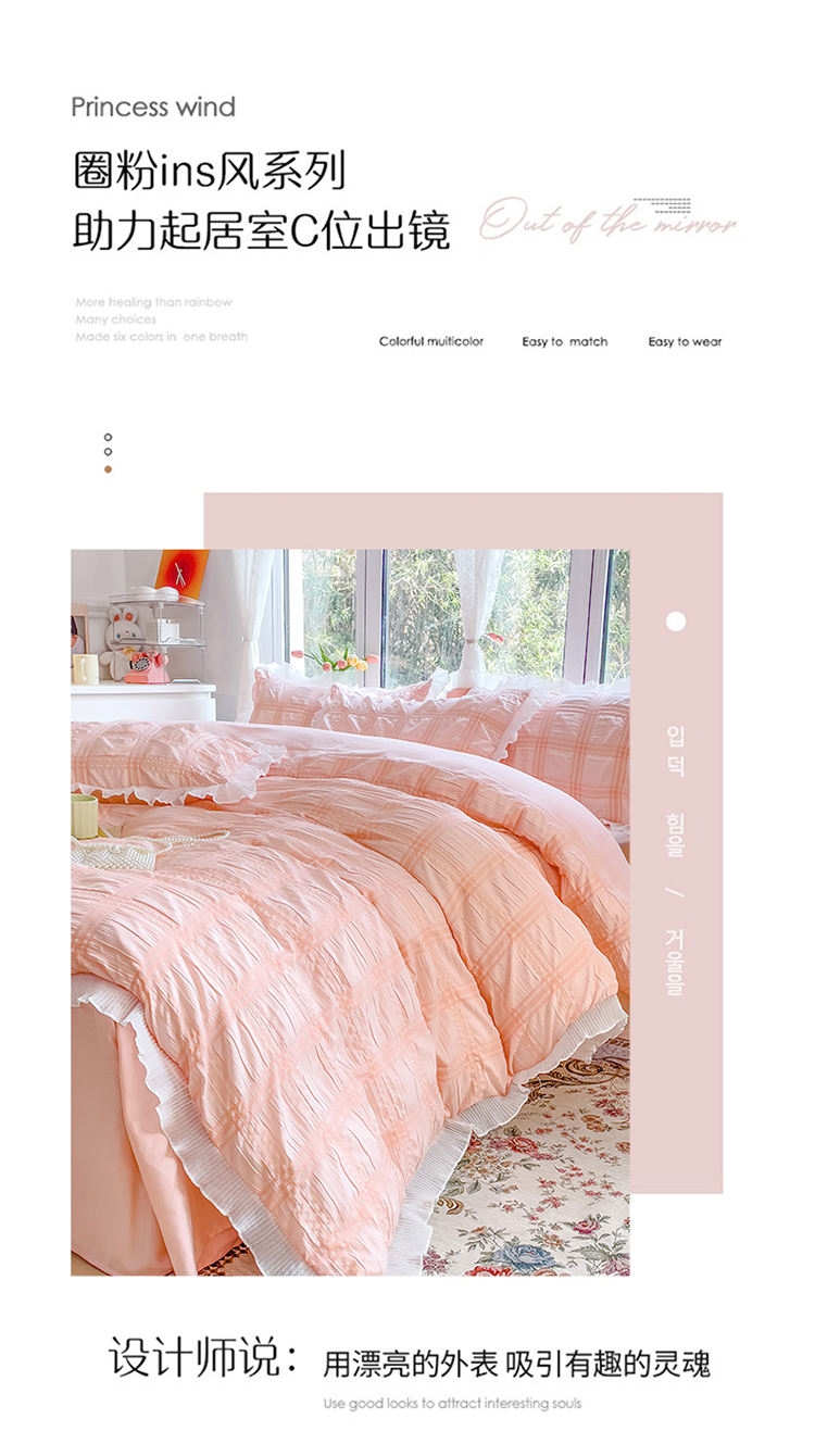 当前位置: 91家纺网 > 商品网购 > 床品套件 > 四件套 > 全棉普通四件套 > 大米2025新款家居韩版公主风泡泡纱雪纺花边四件套 泡泡纱-珊瑚粉