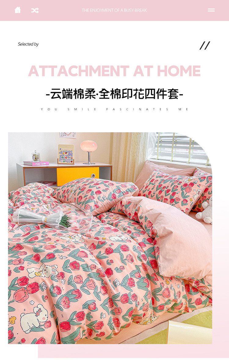 (总)芷卧 2025新款13372全棉碎花小清新四件套,白露,点点,阿芙,安琦,花仙子,花小羊,蓝花兔,落苏,绿玫瑰,清风,兔花园,月野,栀夏,玫瑰庄园