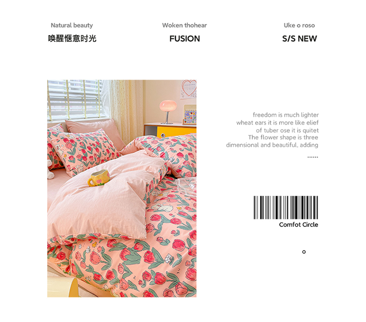 商品名称:芷卧 2025新款13372全棉碎花小清新四件套 月野