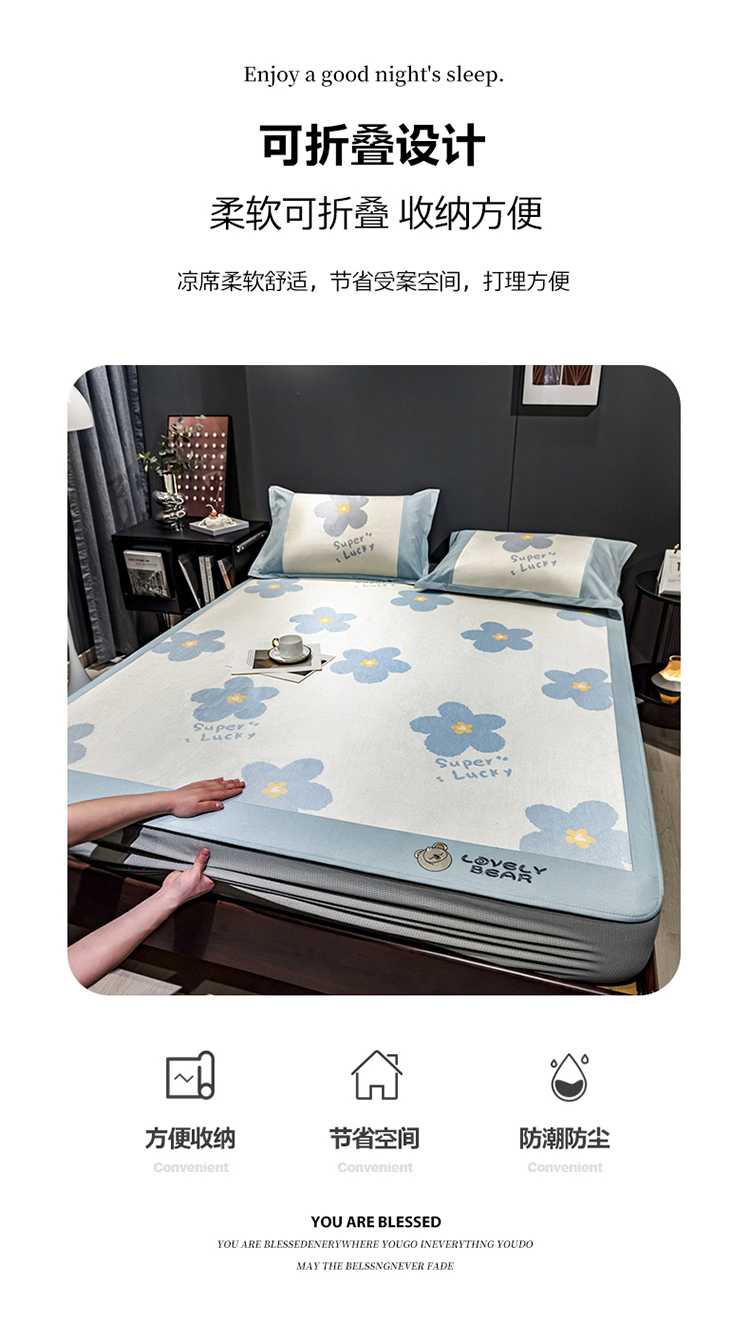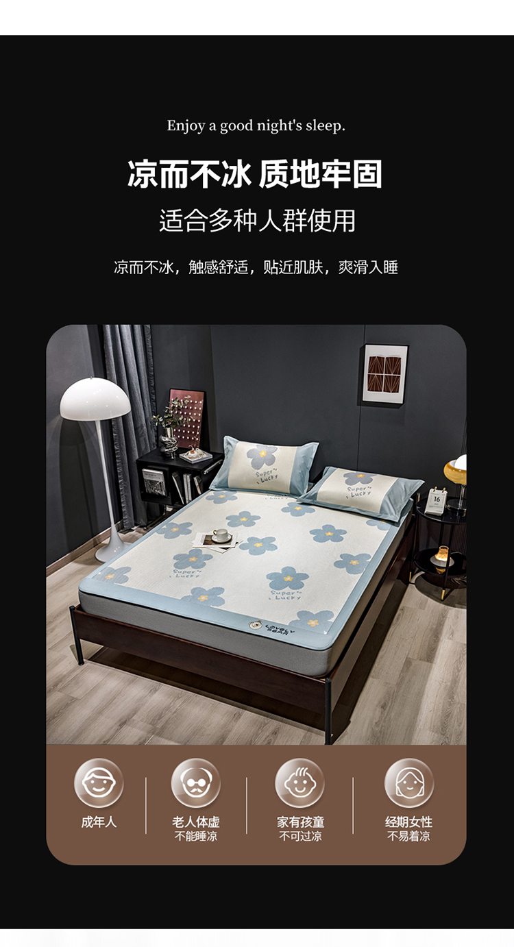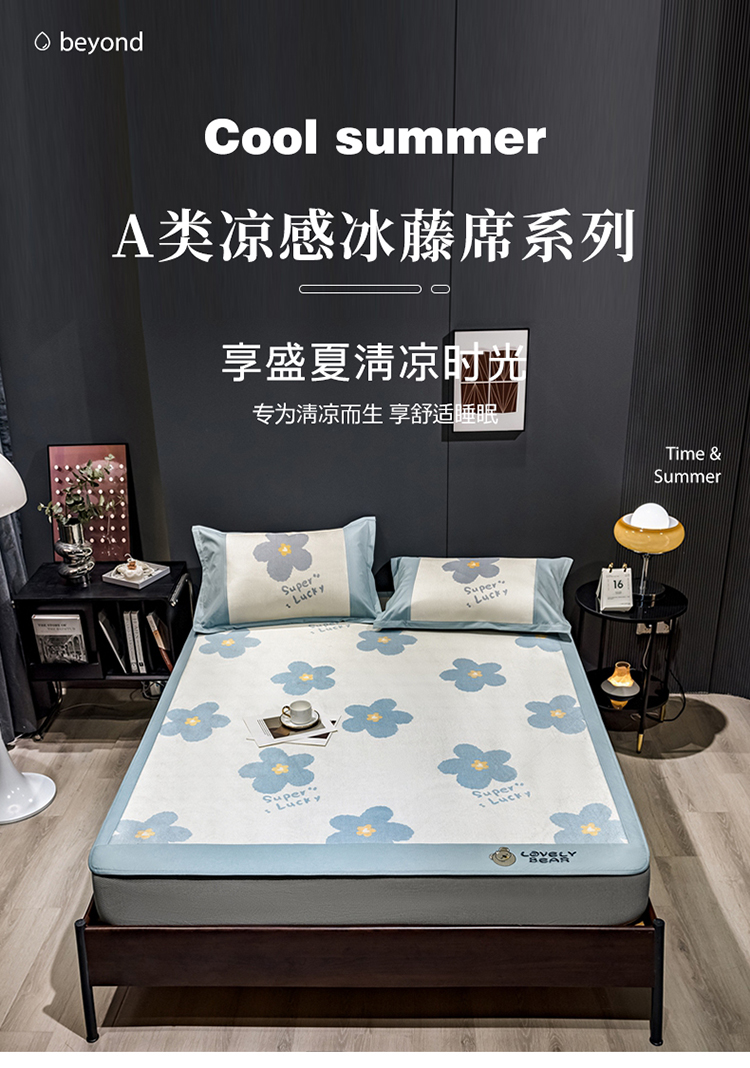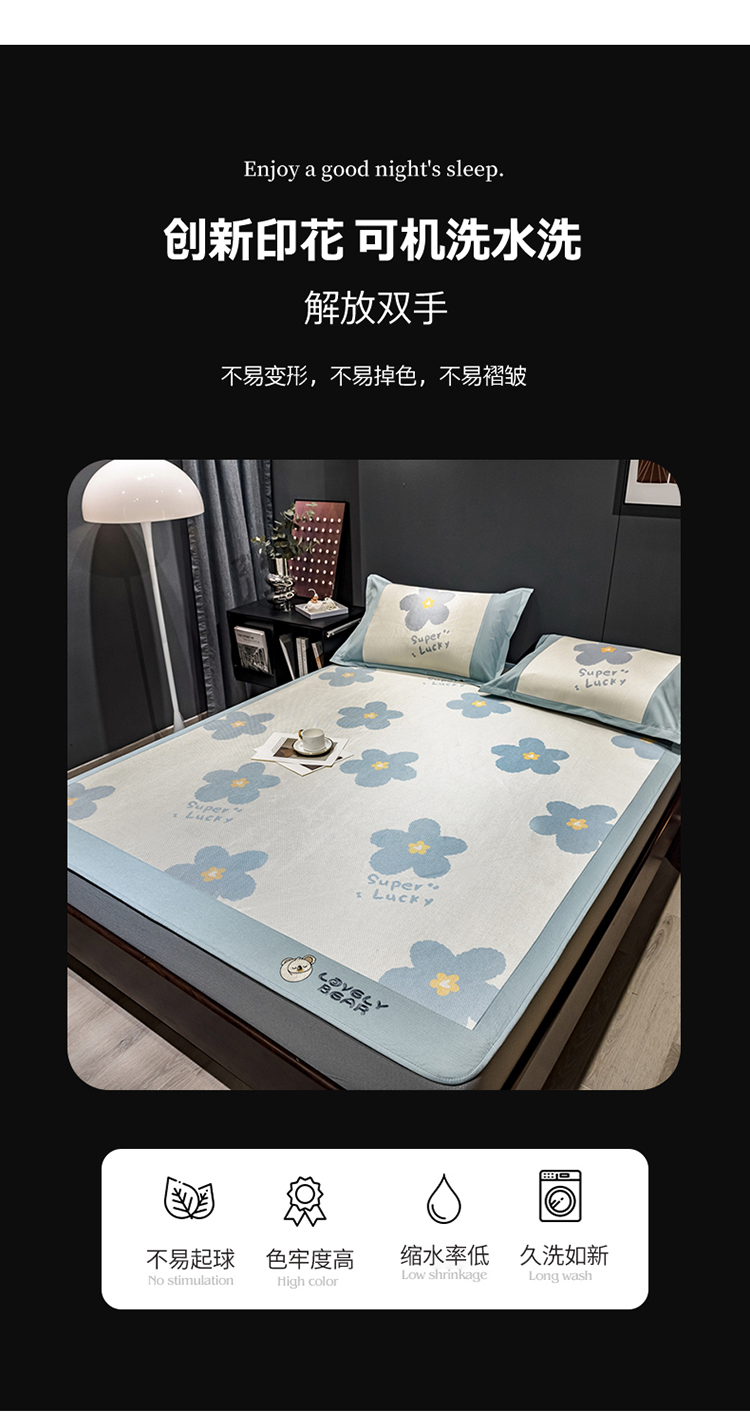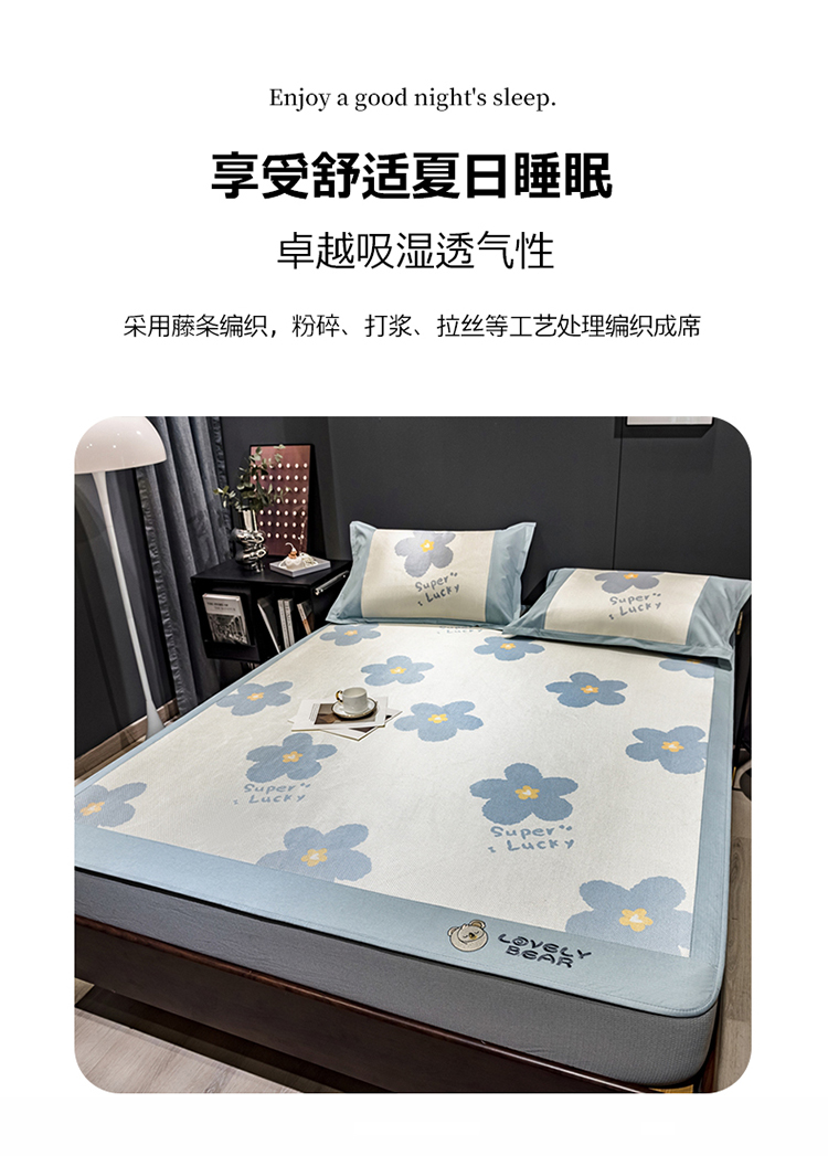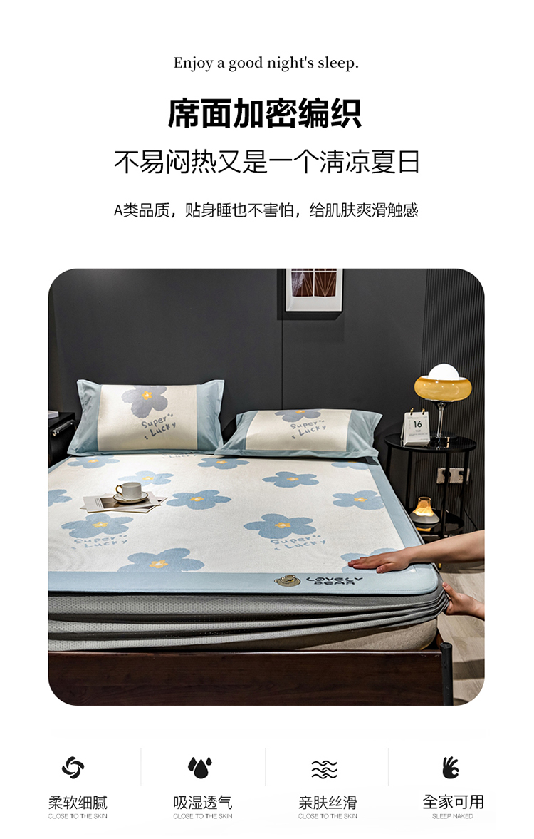 商品名称:全季家居 2023新款A类数码印花冰藤席三件套床笠款 床笠款-幸运花