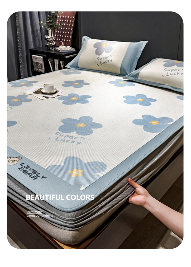 全季家居 2023新款A类数码印花冰藤席三件套床笠款 床笠款-幸运花