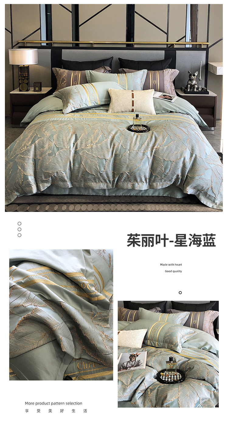 商品名称:雪夫人 2023年 罗浮宫印象100支高精密浮雕四件套 茱丽叶-星海蓝