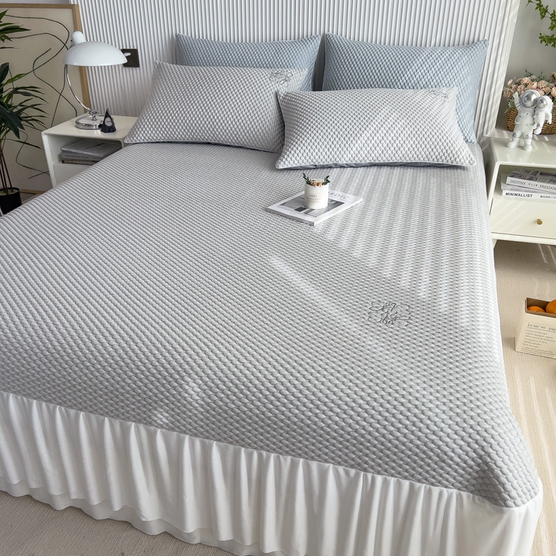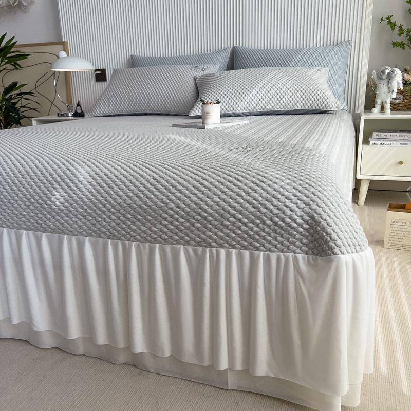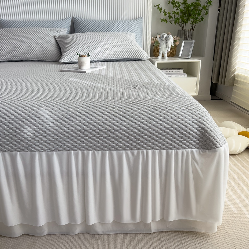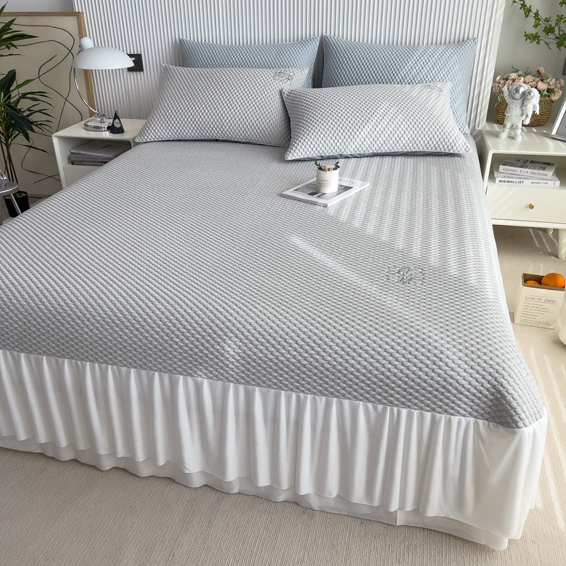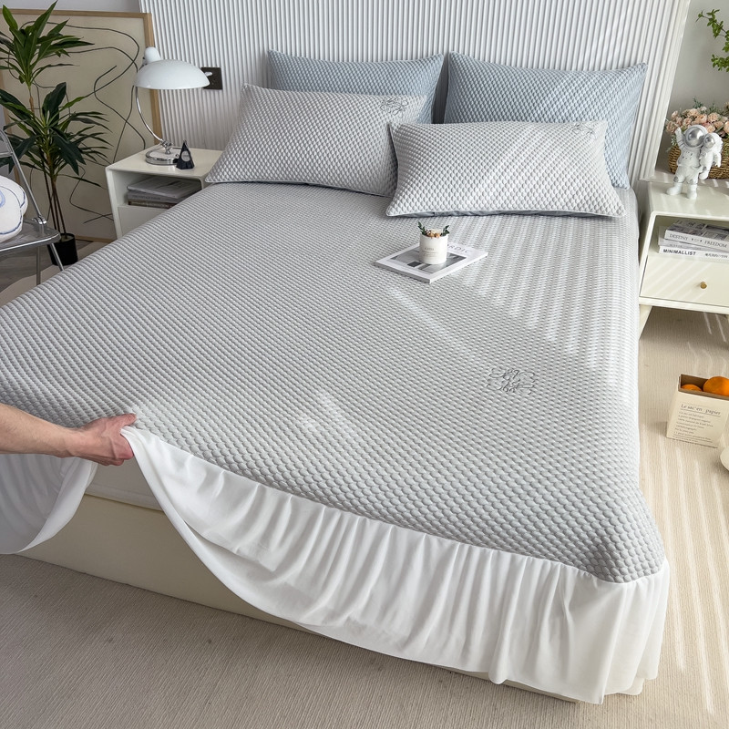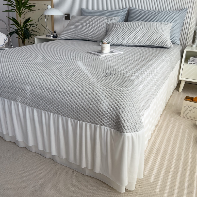 席世家 2023新款高冷感冰豆豆三件套床笠款床裙款 罗威灰-床裙款