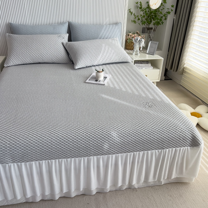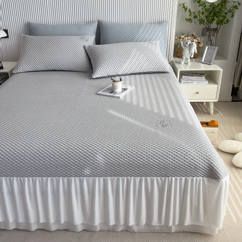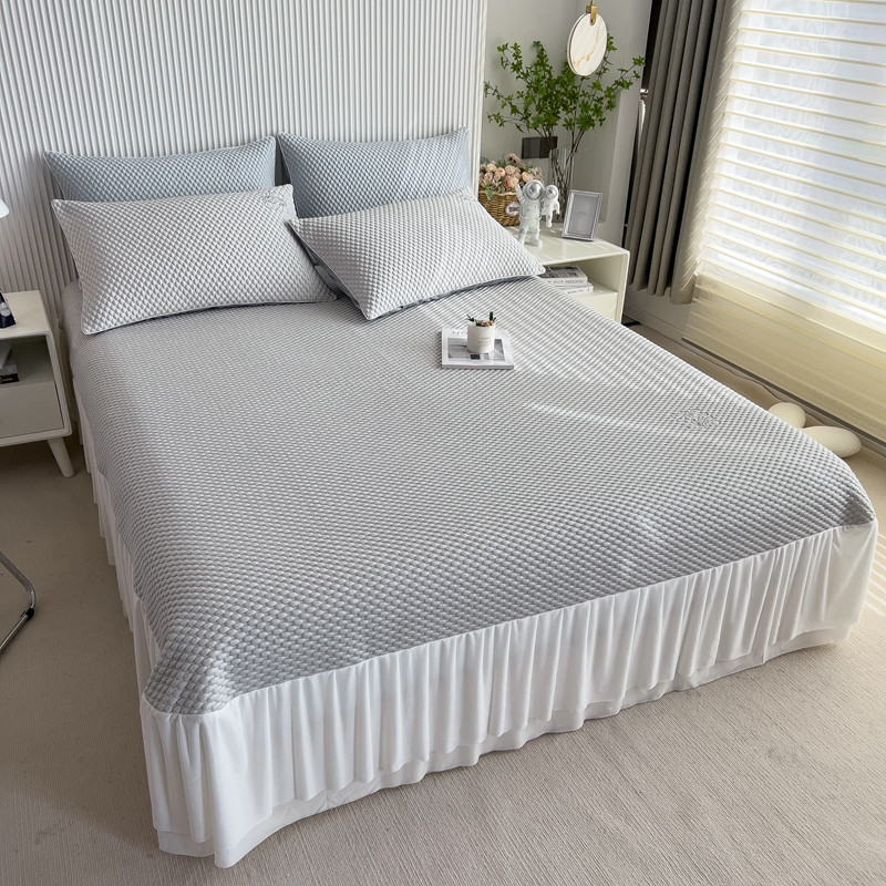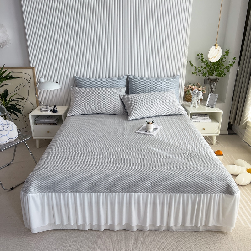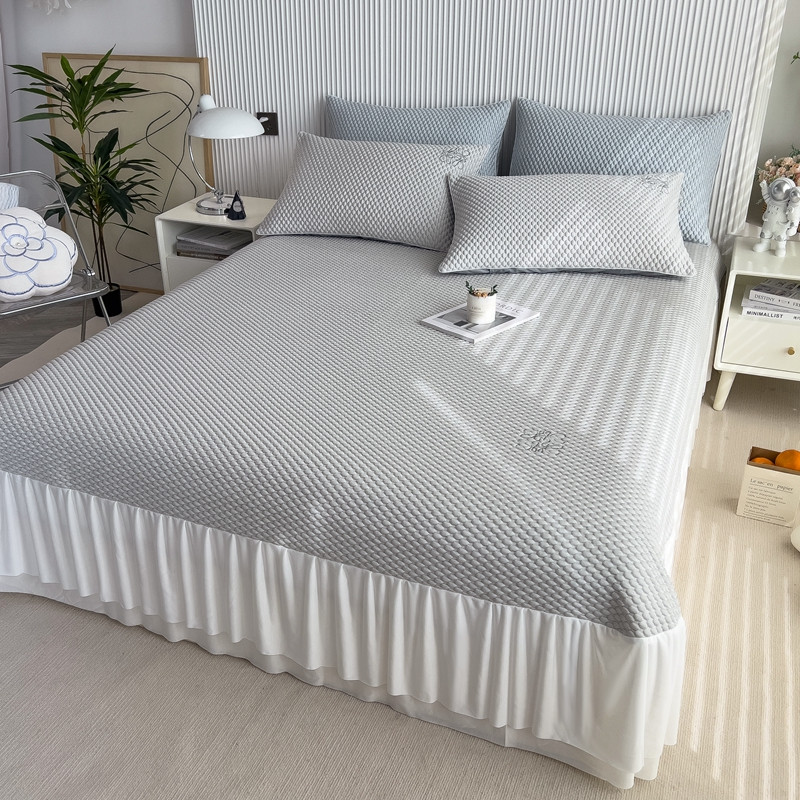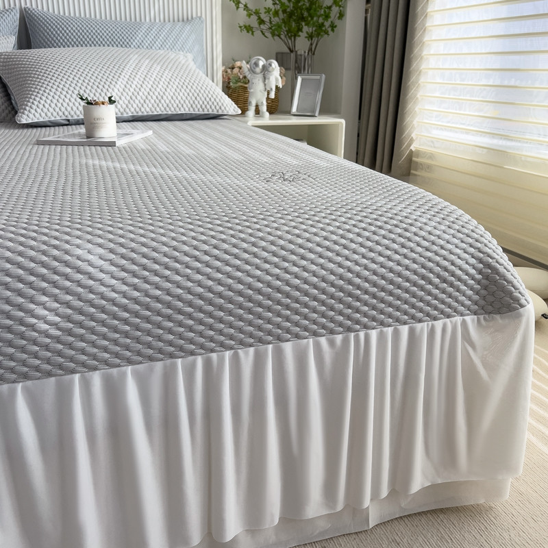 席世家 2023新款高冷感冰豆豆三件套床笠款床裙款 罗威灰-床裙款