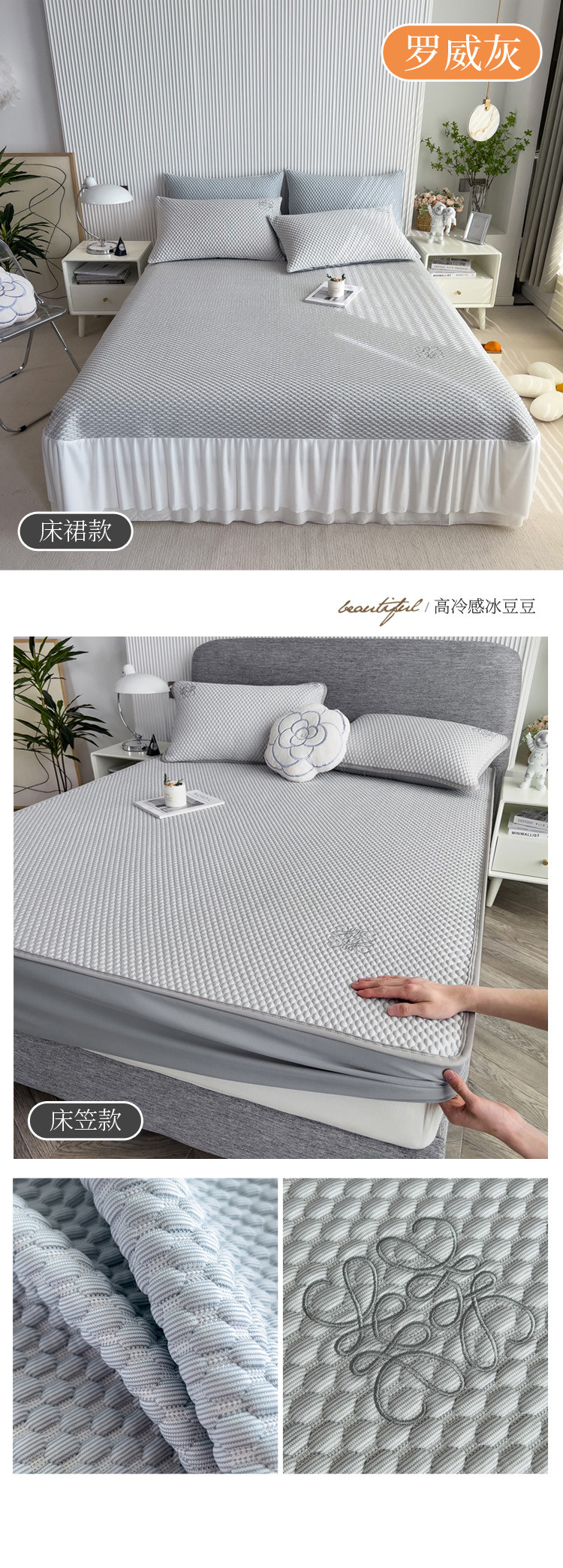 商品名称:席世家 2023新款高冷感冰豆豆三件套床笠款床裙款 罗威灰-床裙款
