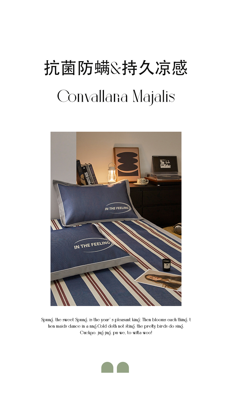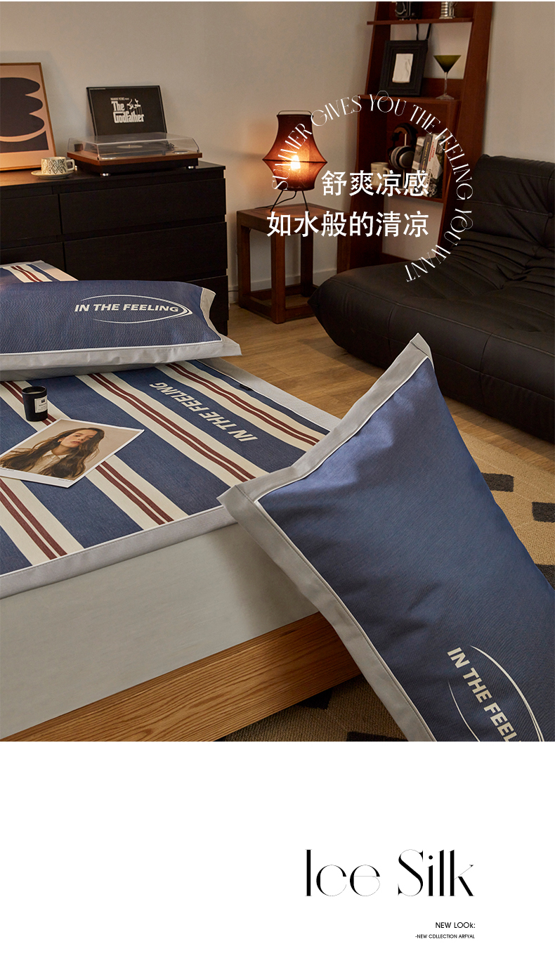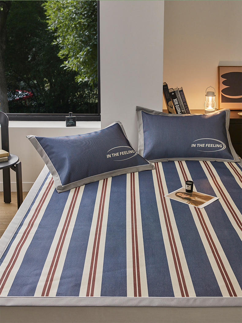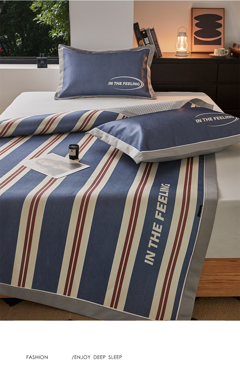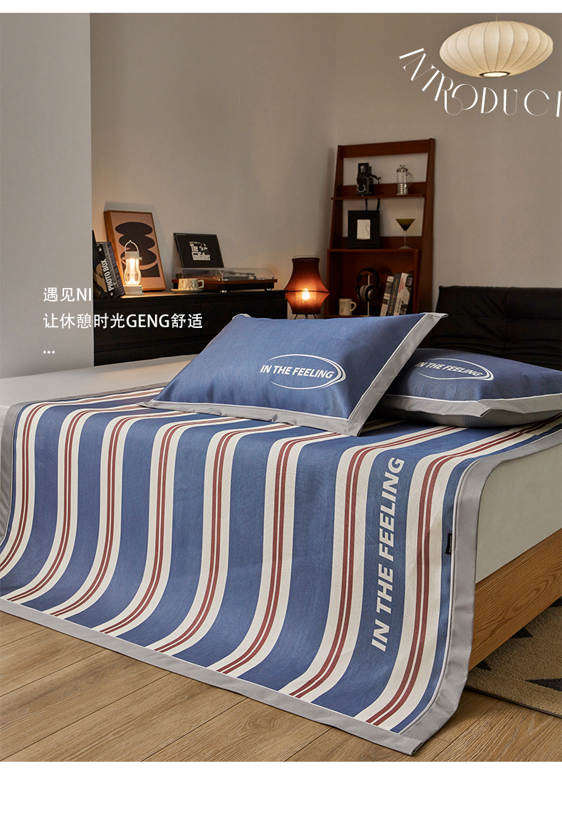 圆岛家纺 2023夏季A类复古条纹系列高档900D数码印花冰丝凉席 普鲁士蓝