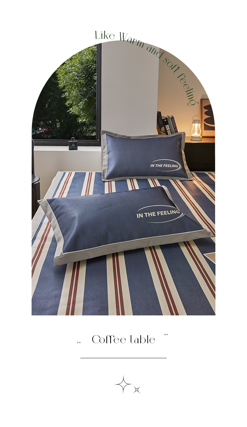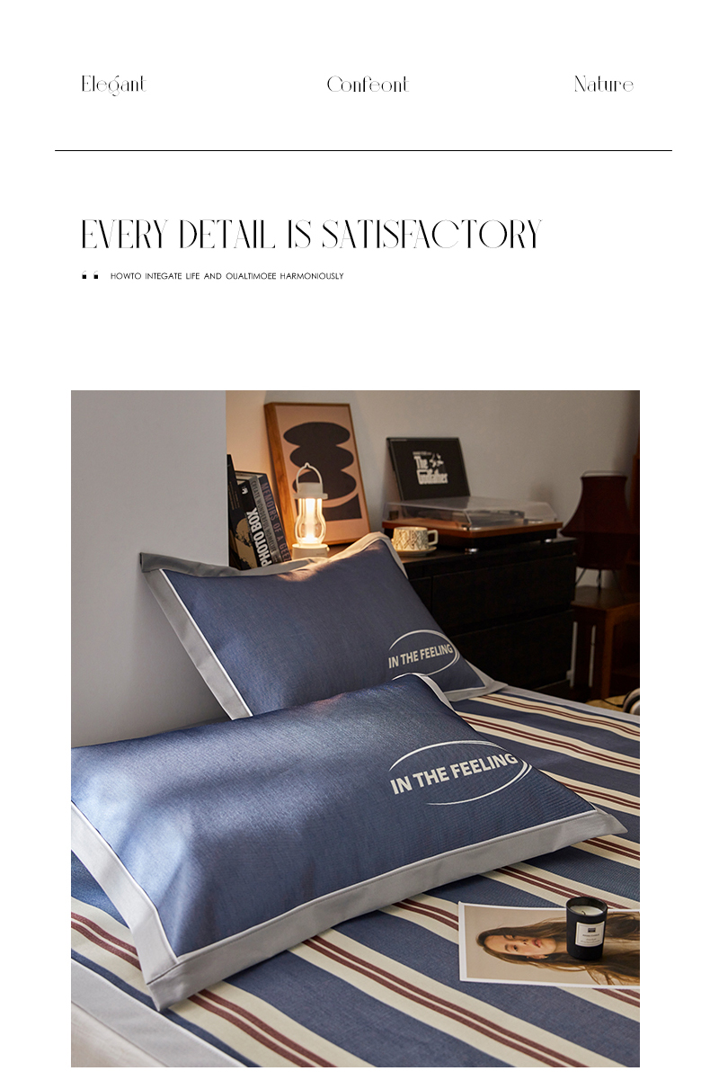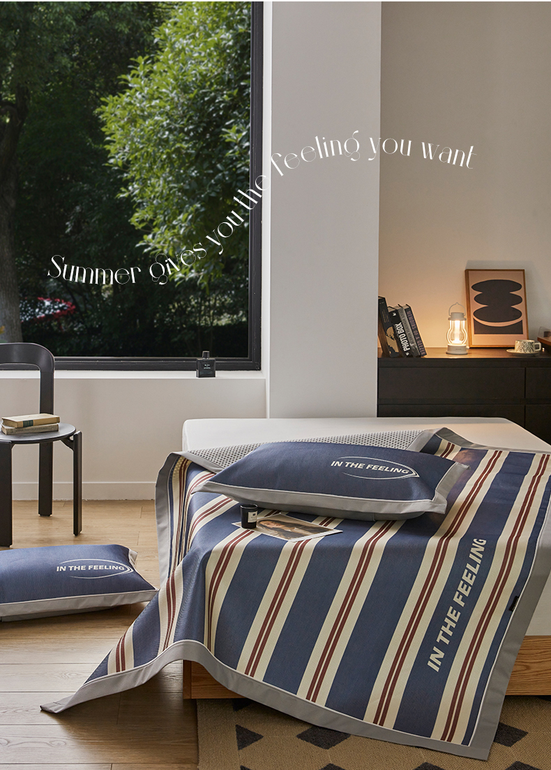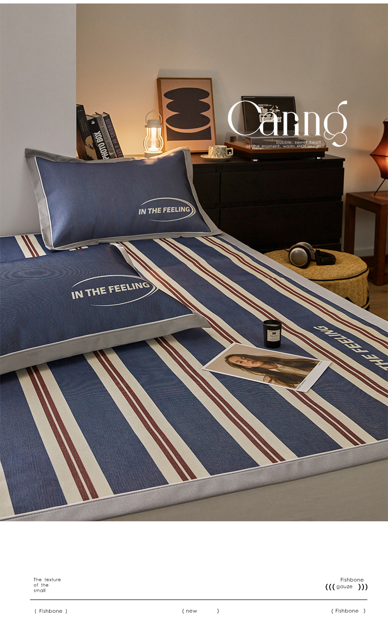 圆岛家纺 2023夏季A类复古条纹系列高档900D数码印花冰丝凉席 普鲁士蓝