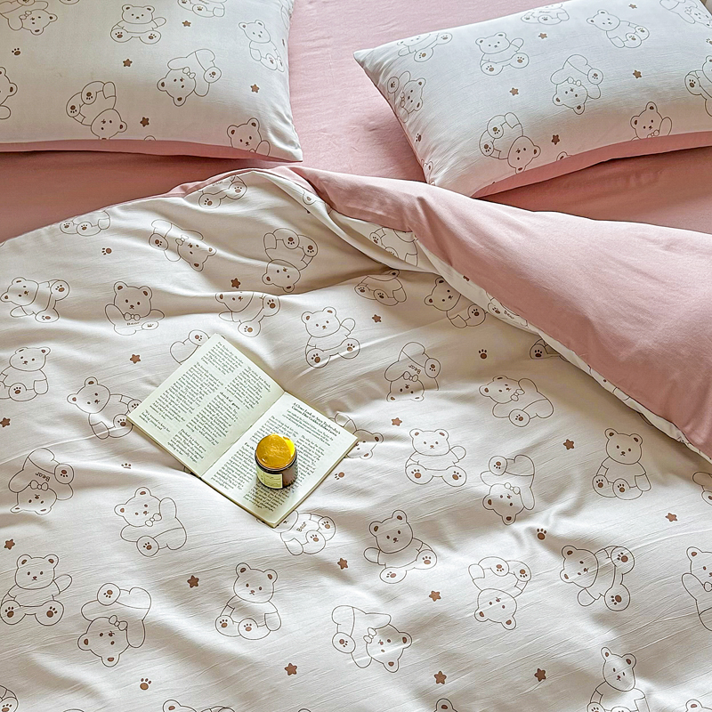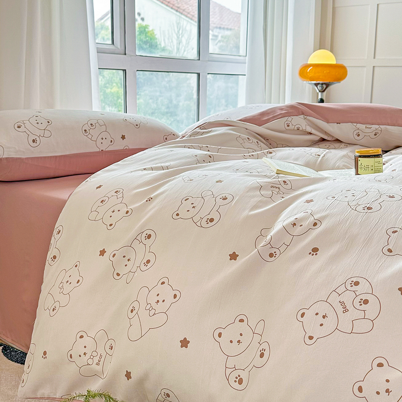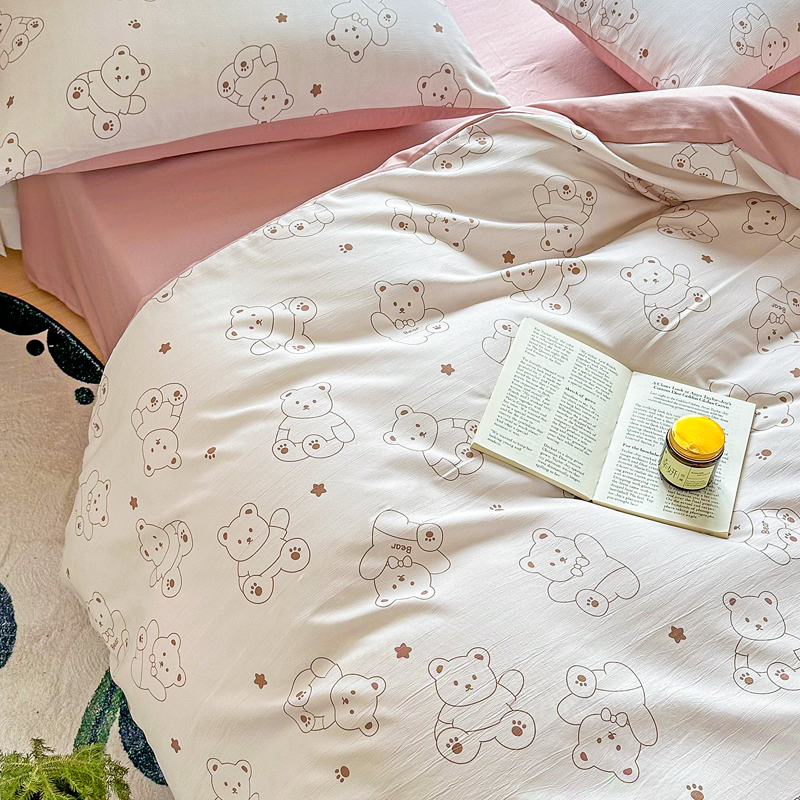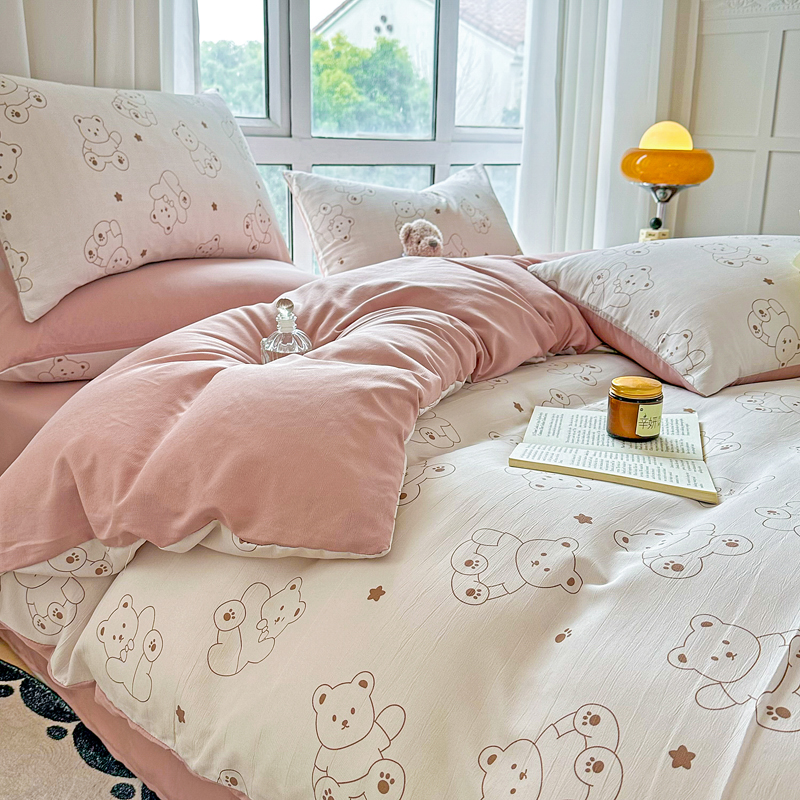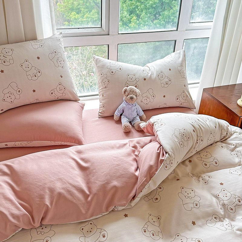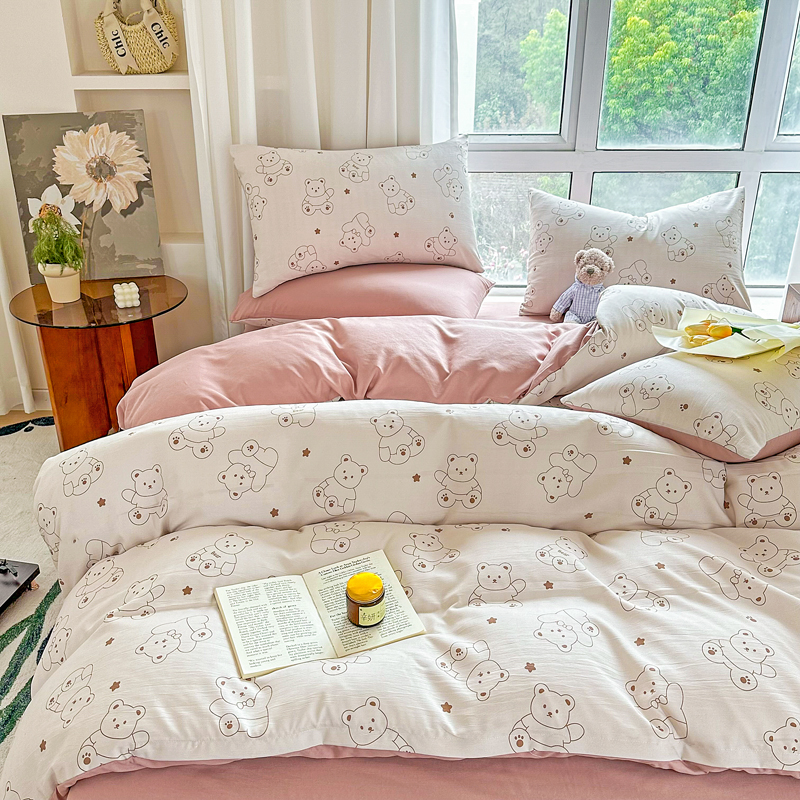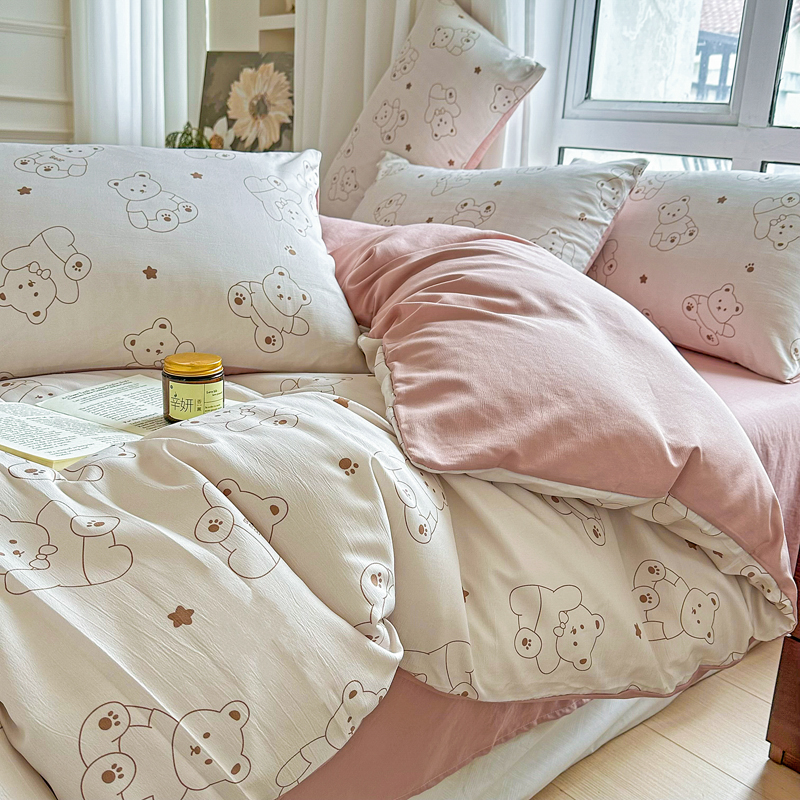 美莱 2023直播爆款水洗棉麻四件套小清新套件可谈价 可爱熊