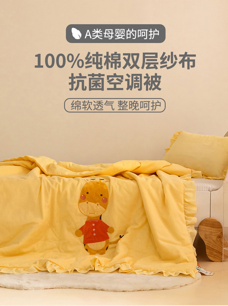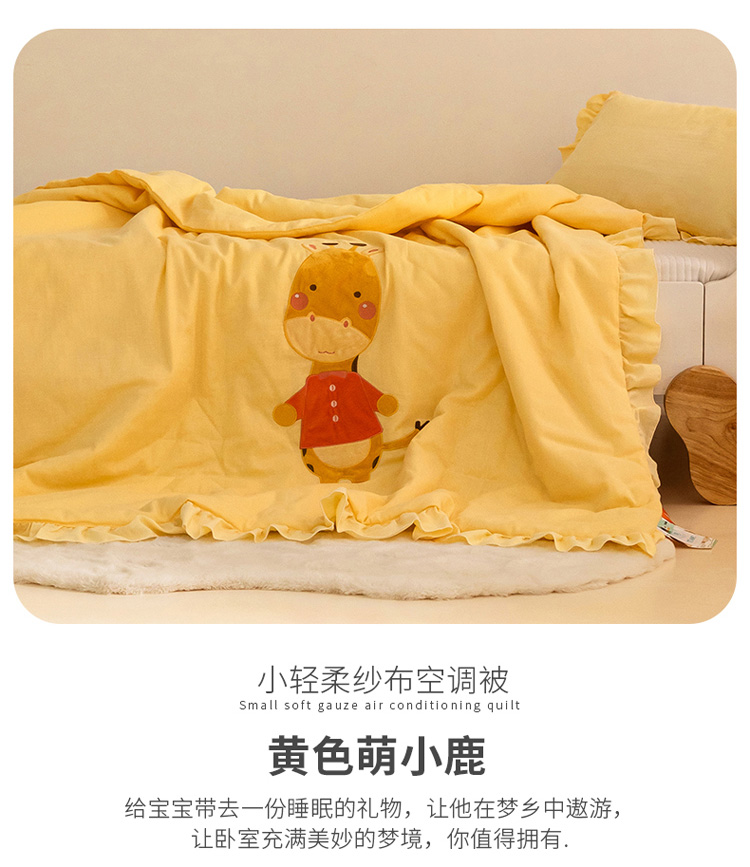商品名称:喜多兔 2023新款小轻柔纱布纯棉双层纱空调被 黄色萌小鹿