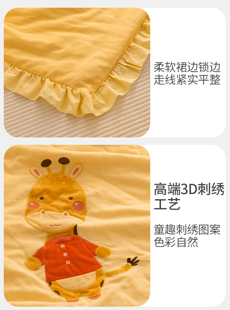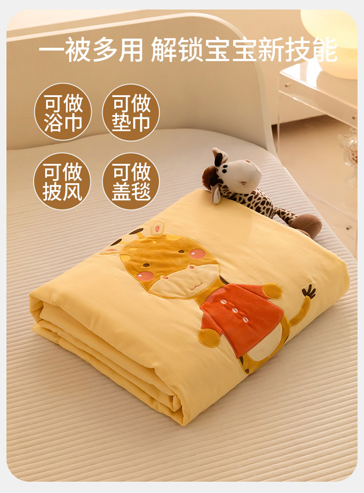 (总)喜多兔儿童家纺 2025春夏新款小软萌贴布绣纱布被,粉色软萌小兔,卡其色软萌小熊,蓝色软萌小象,绿色软萌恐龙,组合图仅供展示