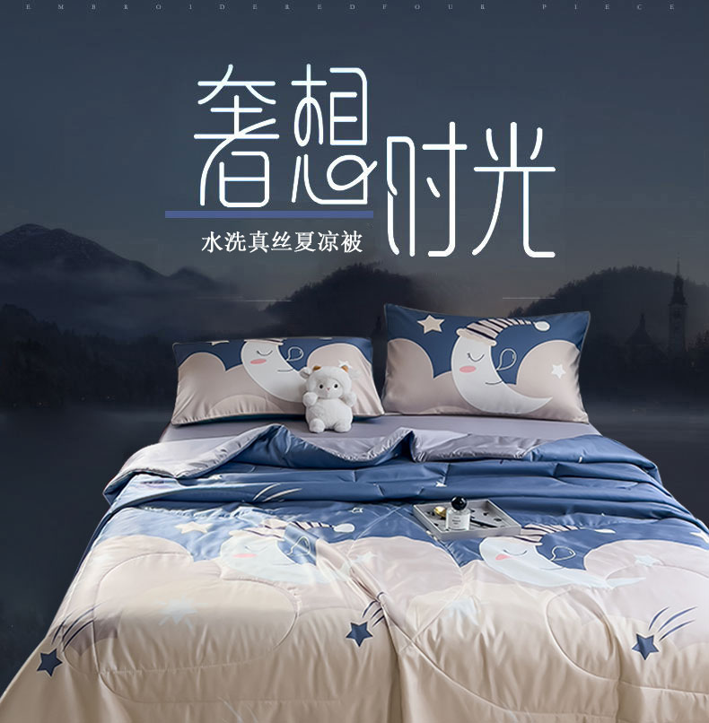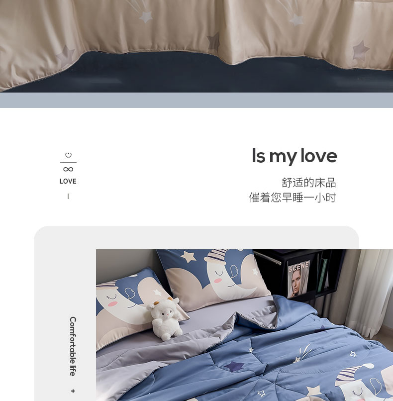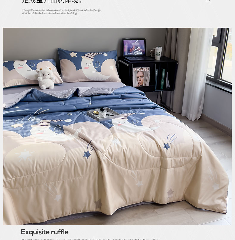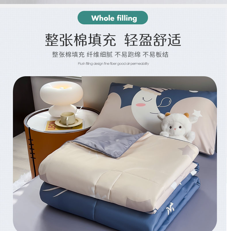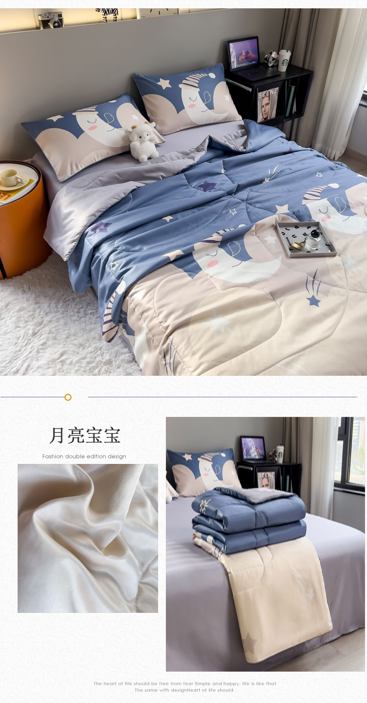 商品名称:梦舒羽 2025新款夏凉被空调被可机洗儿童被夏季双人夏被四件套 月亮宝宝