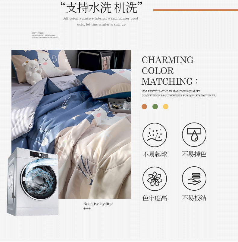 3、通州区市场监督局友情提醒,近期涉及到床上用品不褪色不掉毛不缩水的投诉和以世界知名品牌图案为面料的床品举报较多。请各商家自检自查,对照整改或进行下架处理。